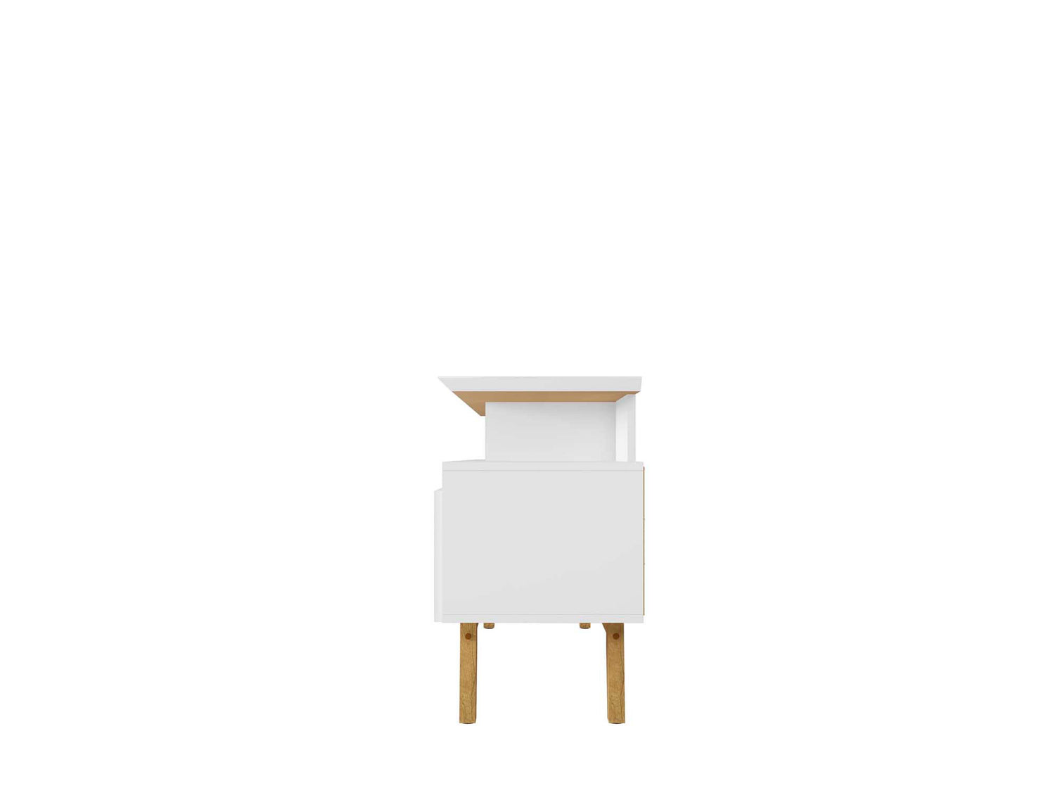 Instantly up your living room design game with the Yonkers TV stand that allows you to host the ultimate movie night, while storing and displaying favorite items, such as albums, magazines, books, and more. Open and concealed storage allows you to tuck away extras and keep remotes or media accessories close by. Beautifully crafted, this mid-century piece works well with any existing interior design and perfectly centers the living room area where friends and family will gather and share memories.