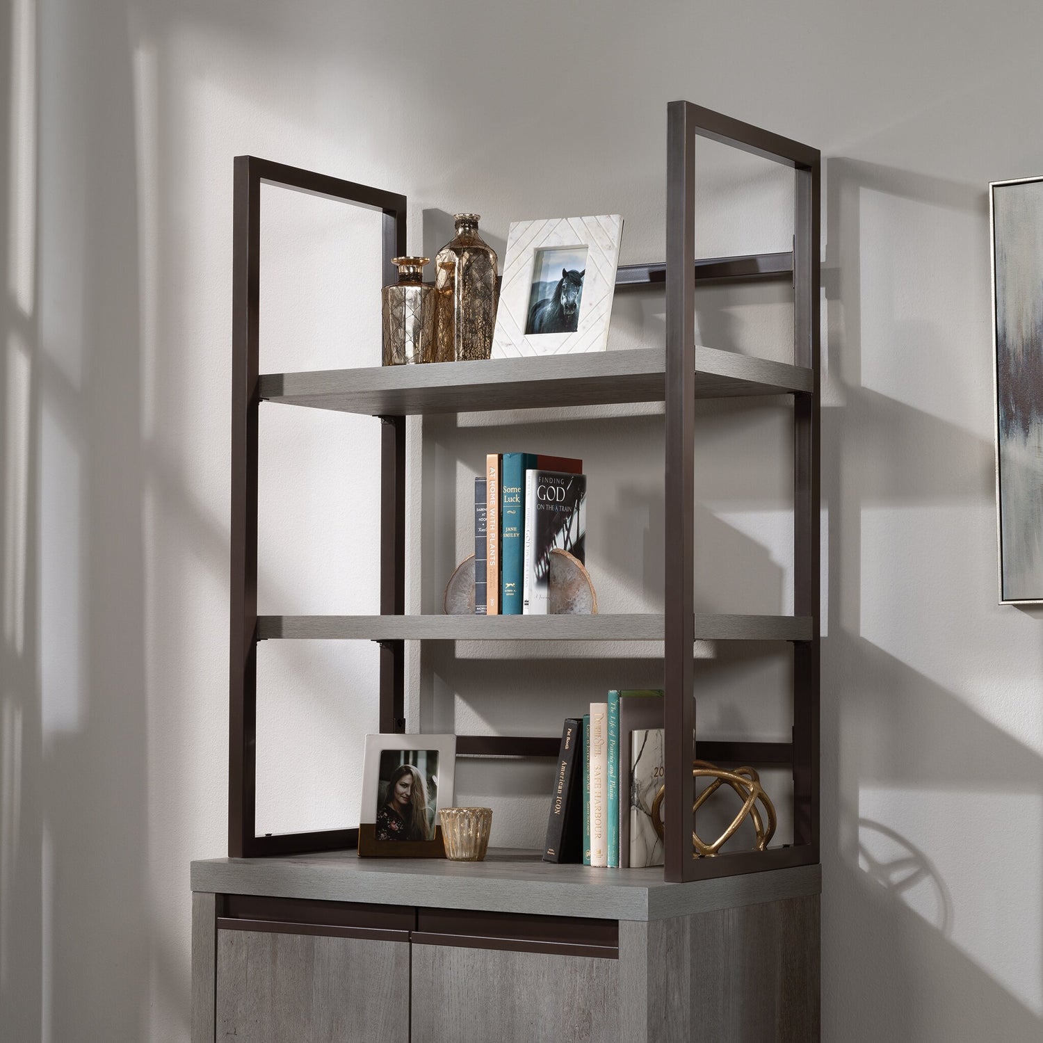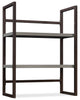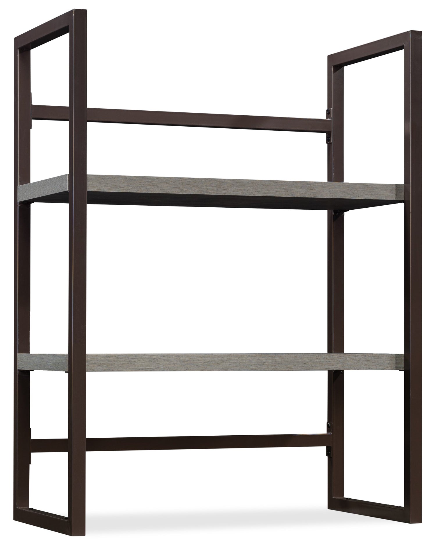 Make a lasting impression in your office with this Manhattan Gate utility hutch. This piece features high-grade, impact-resistant thermoplastic banding and a wall anchor for added stability, bringing style, safety and durability all in one design. Plus, there are two shelves for open storage and display of books, binders, folders, home decor and more. Finished in a dapper grey tone with a powder-coated metal frame, this bookcase-style hutch upgrades your office with simple but elegant design.
