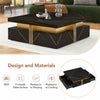 Upgrade your living space with the square coffee table featuring four built-in drawers for organized storage. Crafted from durable engineered wood, this table blends sleek design with practical function. Its clean lines and pedestal base offer a modern touch that suits various home styles. Ideal for keeping your living room clutter-free, it’s both a statement piece and a functional centerpiece. Assembly required.
