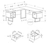 Give your office a promotion with this extra-large Marnie desk. The L-shaped, floating desktop is generously sized and leaves space to use the top of the drawer units as shelves. A reversible configuration lets you set up the desk with the drawer units on either side as desired. The space between the three storage drawers allows ample room to easily move around your workspace. Providing support are three robust metal legs that match the drawer handles. This L-shaped computer desk saves space when used in a corner but is finished on all sides for a polished look wherever it is placed in an office.