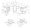Give your office a promotion with this extra-large Marnie desk. The L-shaped, floating desktop is generously sized and leaves space to use the top of the drawer units as shelves. A reversible configuration lets you set up the desk with the drawer units on either side as desired. The space between the three storage drawers allows ample room to easily move around your workspace. Providing support are three robust metal legs that match the drawer handles. This L-shaped computer desk saves space when used in a corner but is finished on all sides for a polished look wherever it is placed in an office.