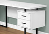 Give your office a promotion with this extra-large Marnie desk. The L-shaped, floating desktop is generously sized and leaves space to use the top of the drawer units as shelves. A reversible configuration lets you set up the desk with the drawer units on either side as desired. The space between the three storage drawers allows ample room to easily move around your workspace. Providing support are three robust metal legs that match the drawer handles. This L-shaped computer desk saves space when used in a corner but is finished on all sides for a polished look wherever it is placed in an office.