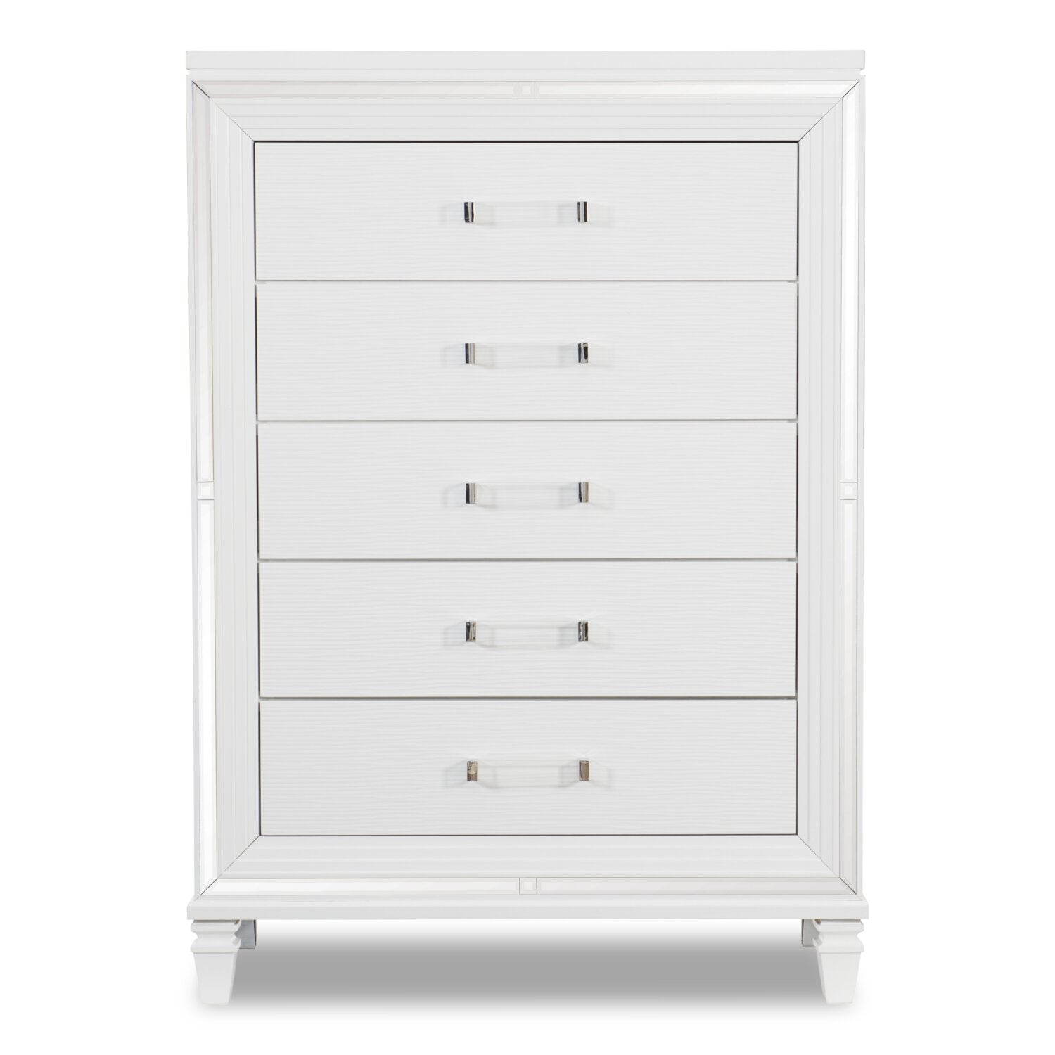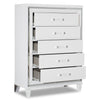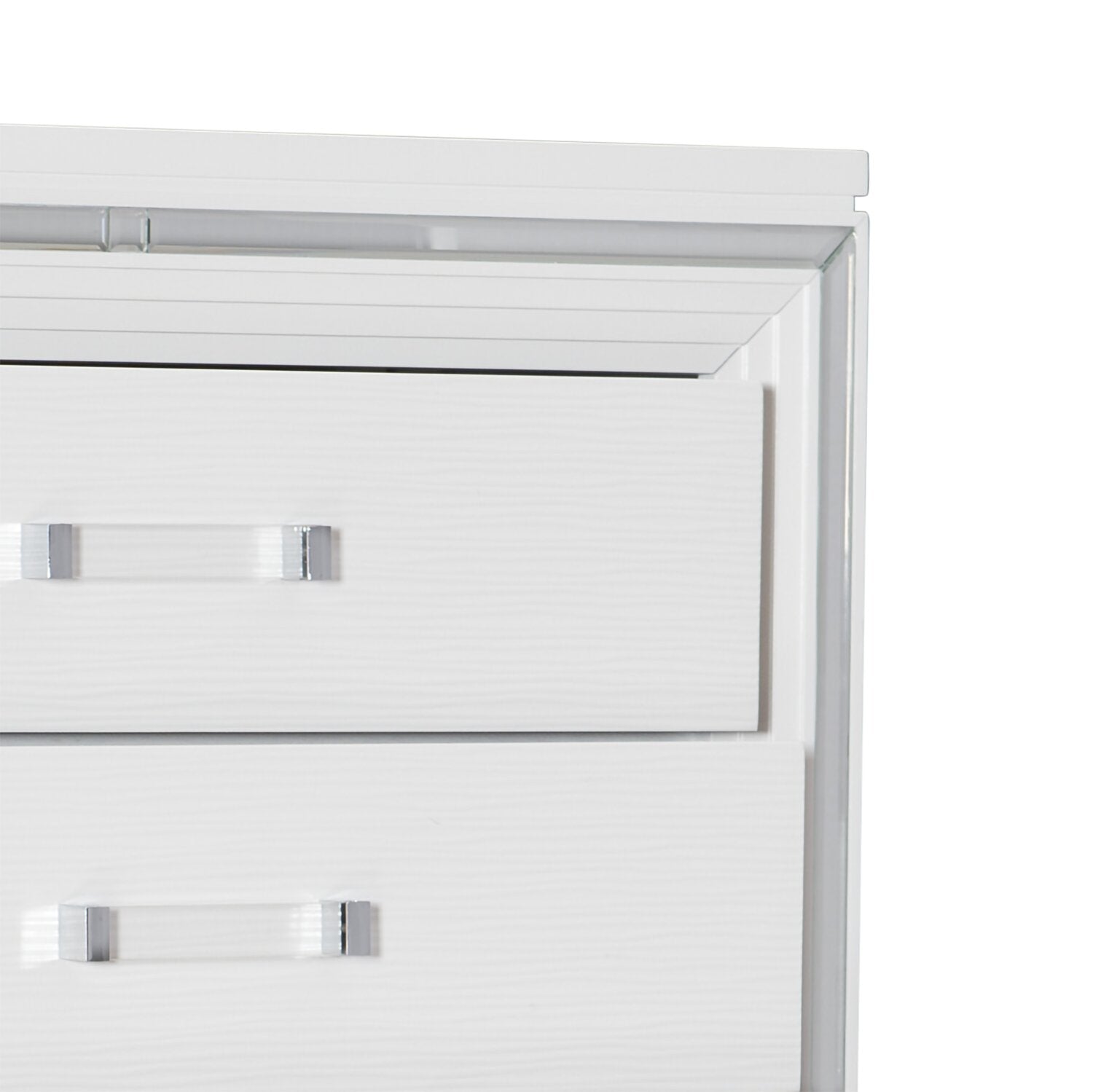 Designed to help your bedroom reach its full sparkling potential, this Max chest's unique details combine to create a stylish and functional addition to your lifestyle. Bevelled mirror trim around the outer edge provides a dramatic enhancement to this piece while five deep drawers provide plenty of space for your clothes. Completed with transparent acrylic handles for the perfect touch of glamorous gloss, enjoy the glitzy presentation this Max chest brings to your room.