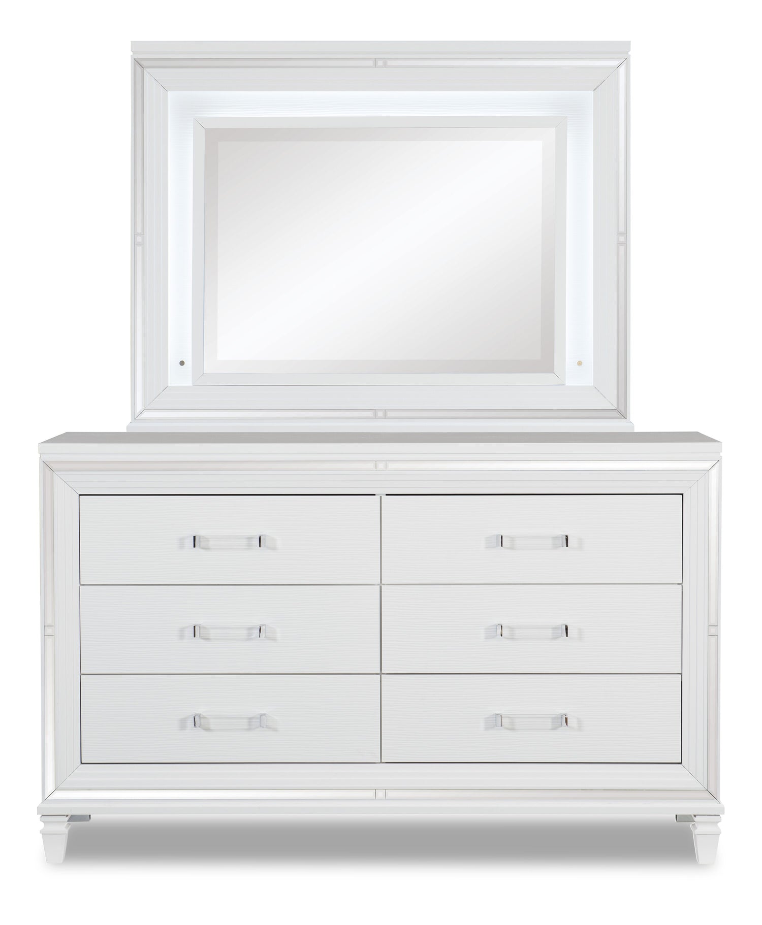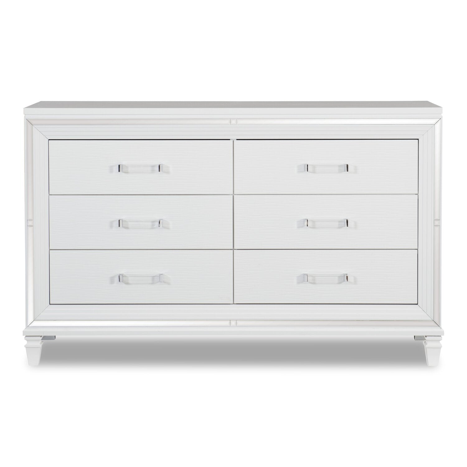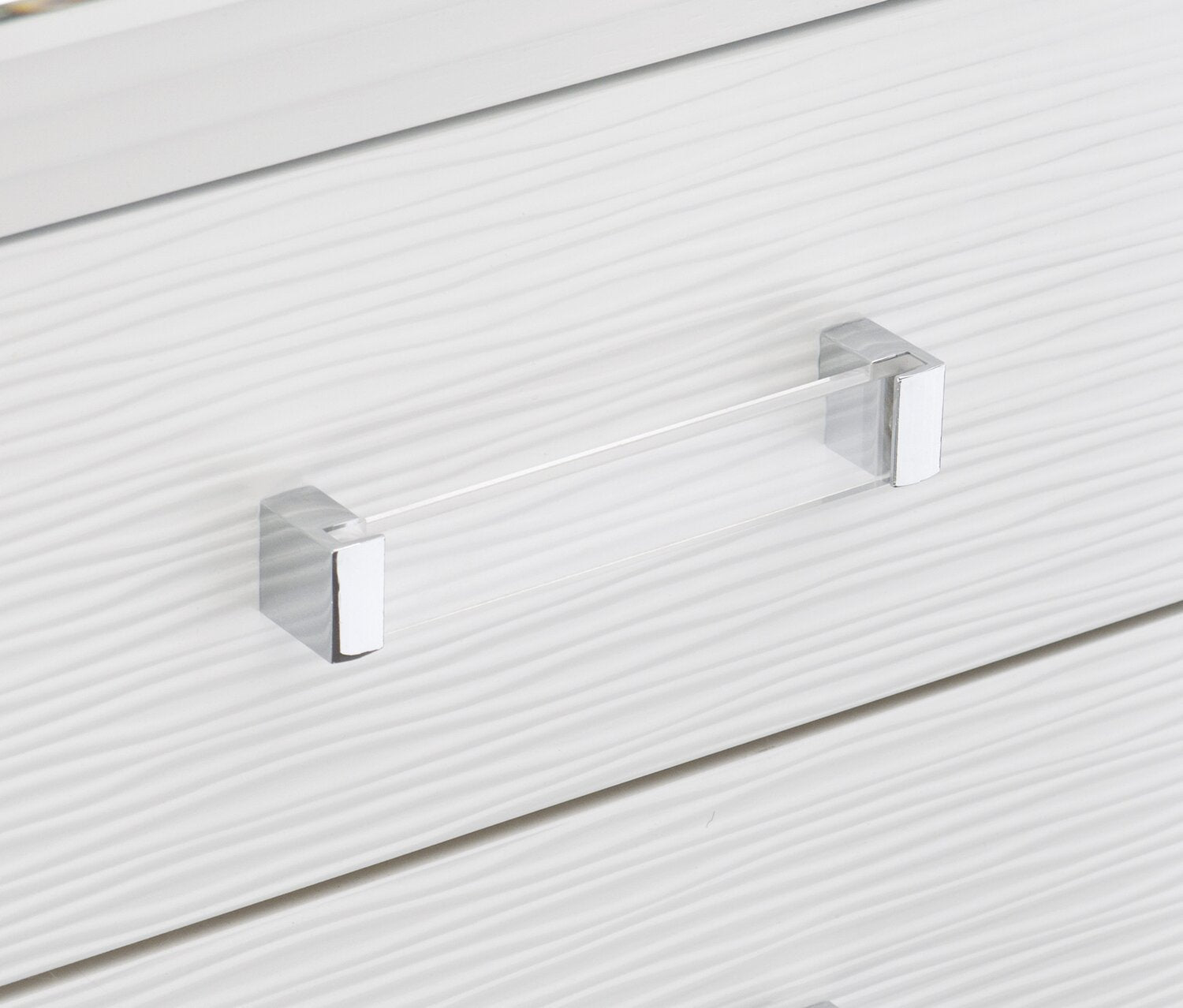 Designed to help your bedroom reach its full sparkling potential, this Max dresser's unique details combine to create a stylish and functional addition to your lifestyle. Bevelled mirror trim around the outer edge lends a dramatic enhancement while transparent acrylic handles add the perfect touch of glamorous gloss. Six deep drawers lend plenty of space for clothes plus two hidden drawers inside provide a designated space for jewellery. Enjoy the glitzy presentation this Max dresser brings to your room.