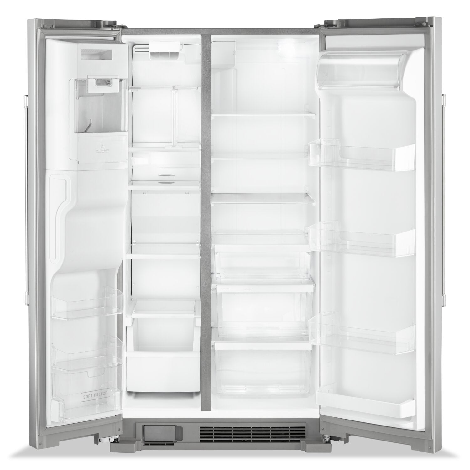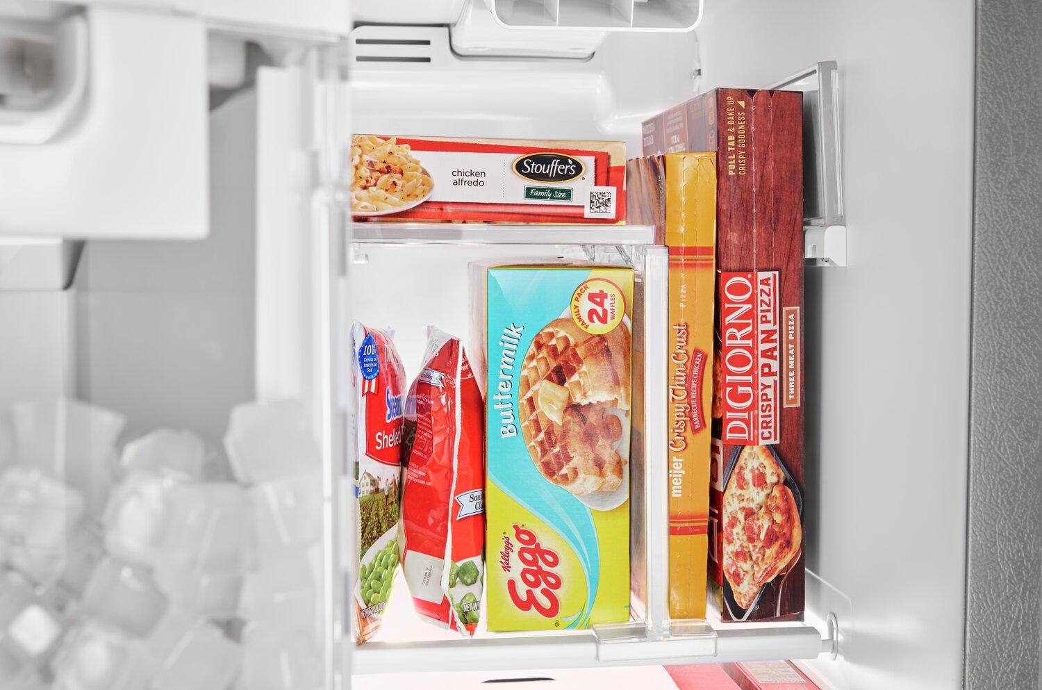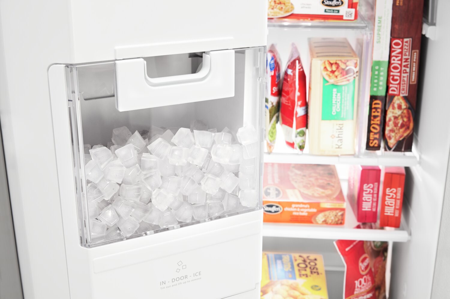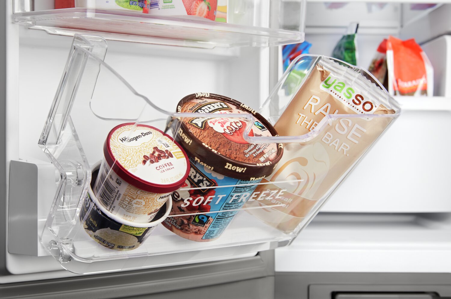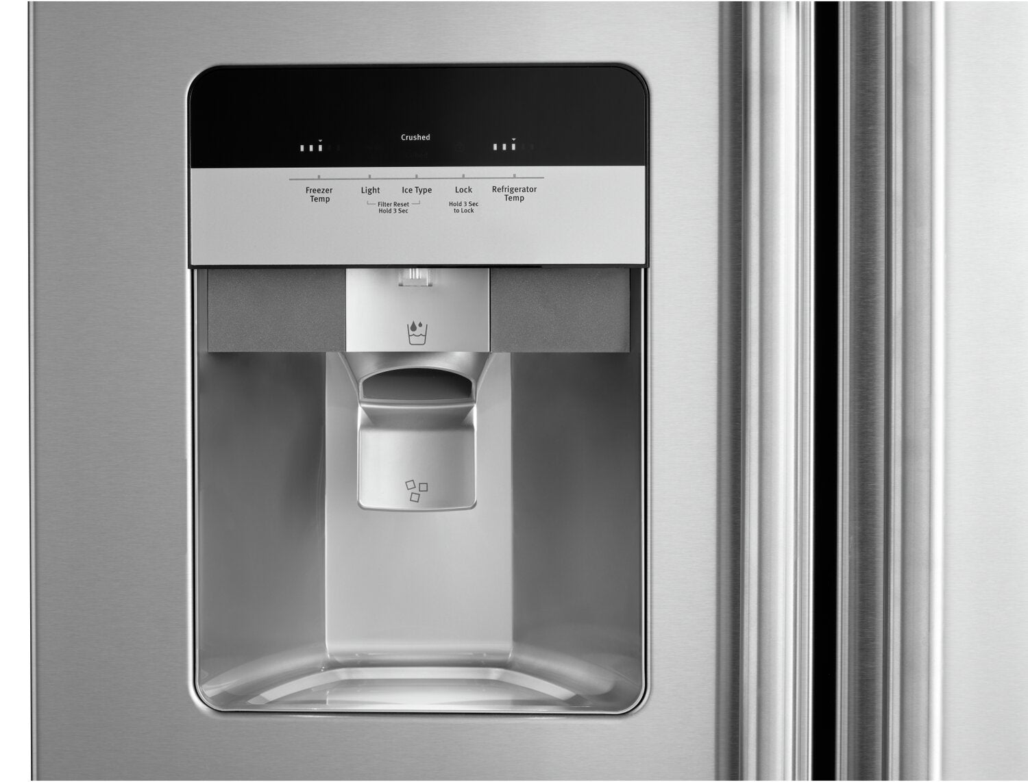 Fingerprint Resistant Stainless Steel: Soft Freeze Bin: Frozen Pizza Storage: Store-N-Door® Ice Dispensing System: Exterior Ice and Water Dispenser: Humidity-Controlled FreshLock™ Crisper: BrightSeries™ LED Lighting: |