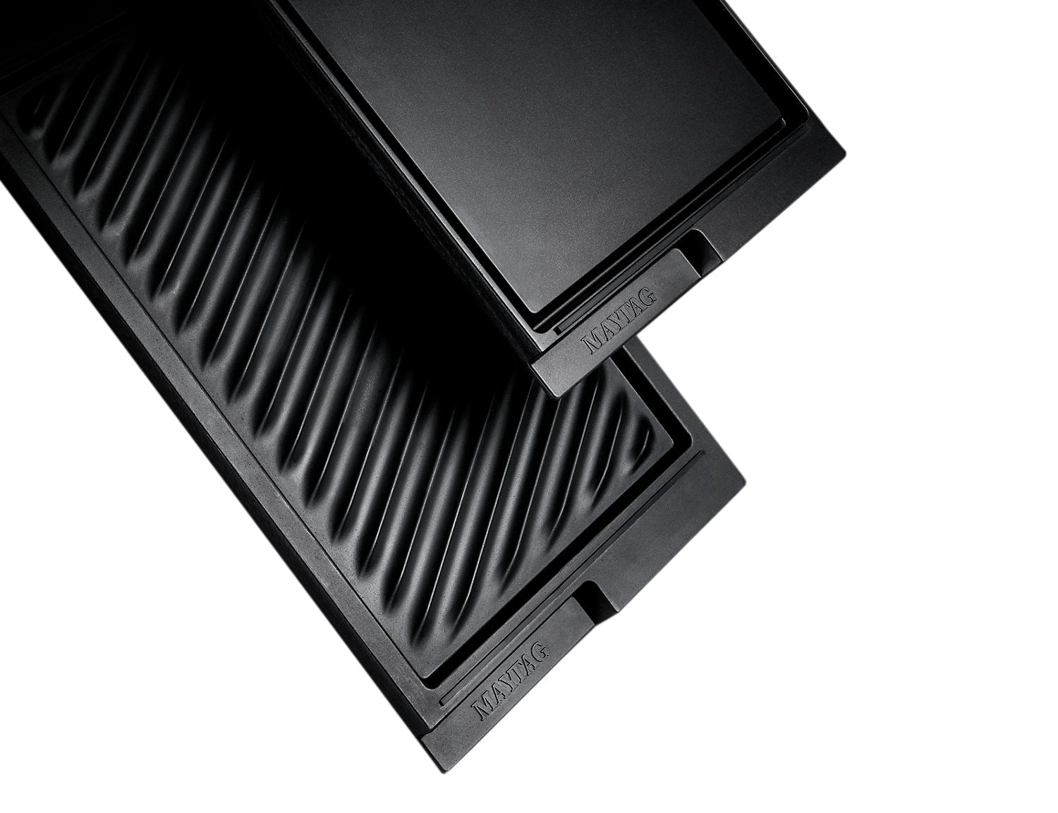 Maytag Exclusive Electric Cooktop with Reversible Grill and Griddle Boil, pan fry, grill, sear, flip and griddle. No matter what you're bringing to the table, Maytag brings the heat with an exclusive electric cooktop with the reversible grill and griddle. Reversible Grill and Griddle Crank up the bridge element with the reversible grill and griddle for grilling burgers and flipping stacks of pancakes. Throw the pan into the dishwasher for easy cleanup. Rubber grips ensure safe, slip-free and scratch-resistant placement on the cooktop. 10-inch/6-inch Dual-Choice Element The 10/6-inch Dual-Choice™ element gives you the ability to cook with the pan you want and the power you need. Control a slow, even sauté and then intensify the heat for searing. |