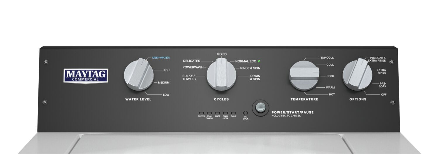 Commercial-Grade Washer: Dual Action Agitator: Water Level Selector: PowerWash® Cycle: Spin Fill: Normal Eco Cycle: |