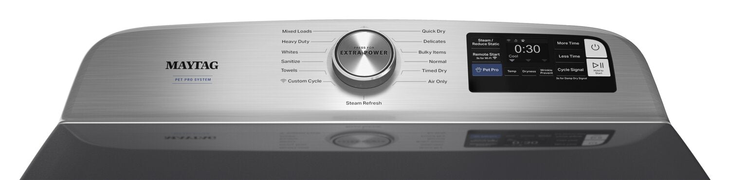 | Dry Cycles | Bulky Items, Custom Cycle, Delicates, Heavy Duty, Normal, Quick Dry, Regular, Sanitize, Steam Refresh, Timed Dry, Towels, Whites, Wrinkle Control |