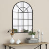This arched window pane mirror has an elegant and decorative metal window frame that looks great in any space. A clean modern design that fits with any decor. This mirror will freshen up the look of your bathroom, bedroom or hallway and offers durability and style all in one.