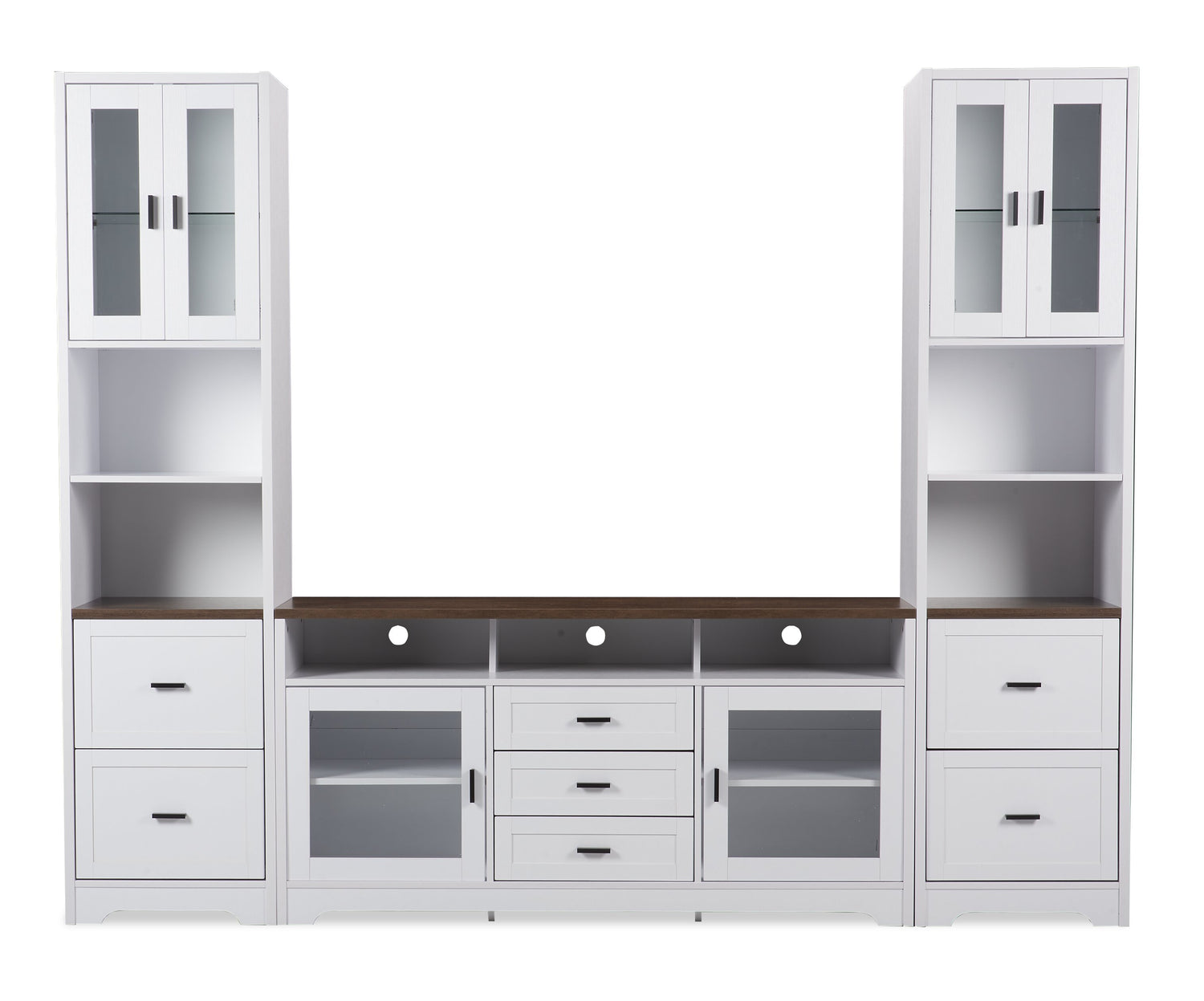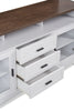 | Storage Options | Two cubbies with an adjustable shelf; one cabinet with a glass front door; two drawers with metal drawer glides. |