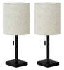 Searching for the perfect accent lamps to brighten up and illuminate your home? look no further than this set of 2 stylish table lamps! This set of 17" h contemporary table lamps features a sleek black metal neck and base and contrasting beige fabric cylinder drum shade, combined to create an inviting ambiance in an office, living room, or bedroom. Each accent lamp is equipped with a pull chain switch for makes it easy to turn them on and off with one quick click, while a USB port included on the base is ideal for charging your cell phone. Using a single bulb (not included) for a maximum output of 40W/120V and attached with a 6ft black cord, this set of decorative lamps provides a practical lighting solution when placed on your end or side table, console table, nightstand or bedside table. Made with quality materials, this set includes a 2-year limited warranty against any manufacturer's defects for a worry-free purchase.