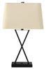 Add the perfect accent to your living room, bedroom, or office, with this stylish 25"h table lamp! Designed with a sleek black metal cross-body frame and topped with an elegant beige linen rectangular shade, this transitional style lamp illuminates any space with ease. Featuring a built-in on/off rocker switch and a USB port to conveniently charge your device, along with a 6ft black cord to place this versatile lamp on an end or side table, nightstand or desk. Using a single bulb (not included) for a maximum output of 60W/120V, this chic lamp will instantly brighten up those dim spaces with some ambiance. Made with good quality materials, this decorative accent is backed with a 2-year limited warranty against manufacturer's defects for your convenience.