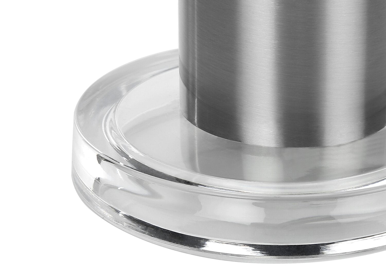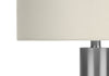 Make your living room, bedroom, or office shine with this sleek and stylish 28"h table lamp! The contemporary nickel metal cylinder body, on a thick circular acrylic base, contrasts with the elegant ivory linen drum shade, finished with a silver metal finial on top. Create the ambiance you want in a room with a flick of the 3-way switch that holds a single bulb (not included) for a maximum output of 100W/120V. Attached with a 6ft transparent cord, place this versatile accent lamp on an end or side table, console, or nightstand for some modern, sophisticated style. Made with durable quality materials ensuring longevity, this lamp includes a 2-year limited warranty against any manufacturer's defects for a worry-free purchase.