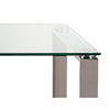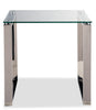 Sleek and modern, this Metro end table adds a strong dose of style to any living room. Bold, rectangular chrome legs shine bright and hold aloft the thick, tempered-glass tabletop. This light and airy combination boasts a large surface. With lots of space for mugs, lamps or decor, the table is very functional without appearing overly large or heavy. Glass and open metal lets light shine through and reflect, giving the table a bright and clean aesthetic that will instantly refresh your home.