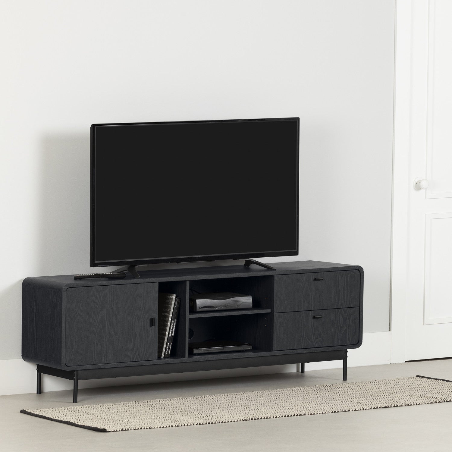 Engineered for entertainment, this TV stand provides a plethora of storage options. Beyond accommodating TVs up to 75 inches, this piece features a door with adjustable shelf, two full-extension drawers, and a centrally located shelf adjustable to three heights. The vertical storage area can house your books or vinyl, making this unit exceptionally versatile.