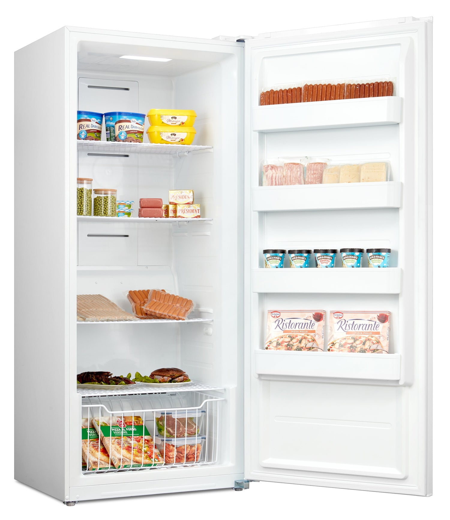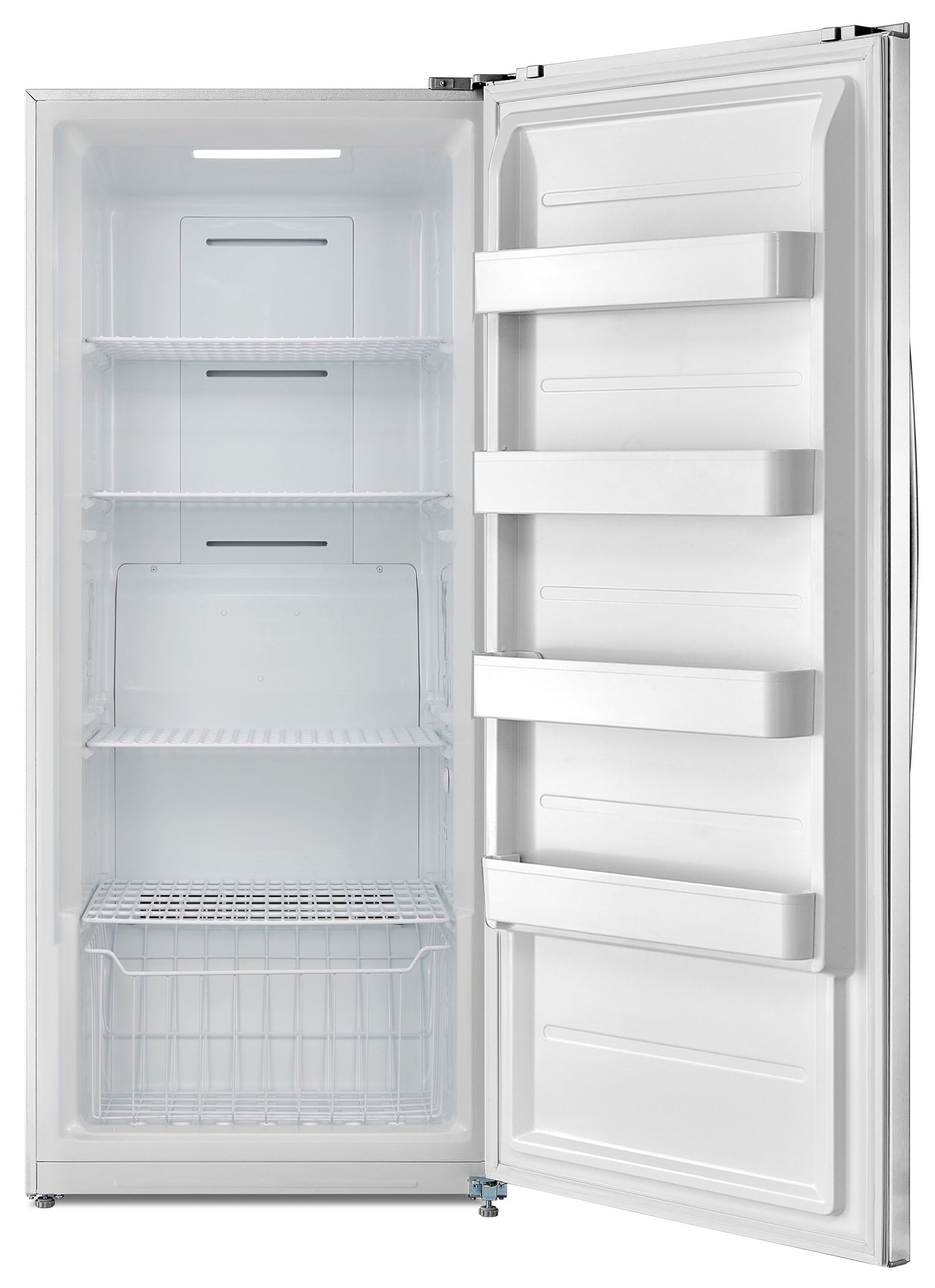 Small spaces can still enjoy efficient, space-conscious design with this Midea convertible upright freezer. Its slim and sleek exterior hides a spacious and bright interior. With LED lighting to keep your food visible and easy to grab, four shelves, a basket and four additional door buckets for large bottles, there’s a home for everything. Best of all, this appliance can switch between freezer and refrigerator for customizable storage. Use extra freezer space to store meat during the winter, and refrigerate your cold drinks and salads for a summer BBQ.