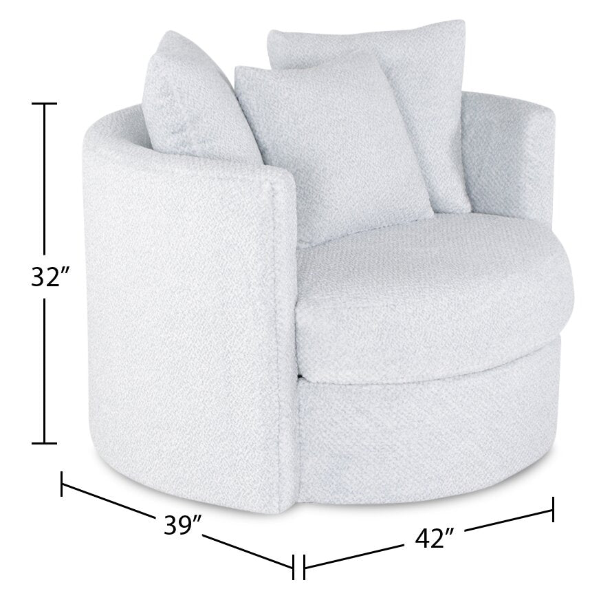 | Accent Details | Plush pillows and luscious chenille fabric give this chair a luxurious appearance. |