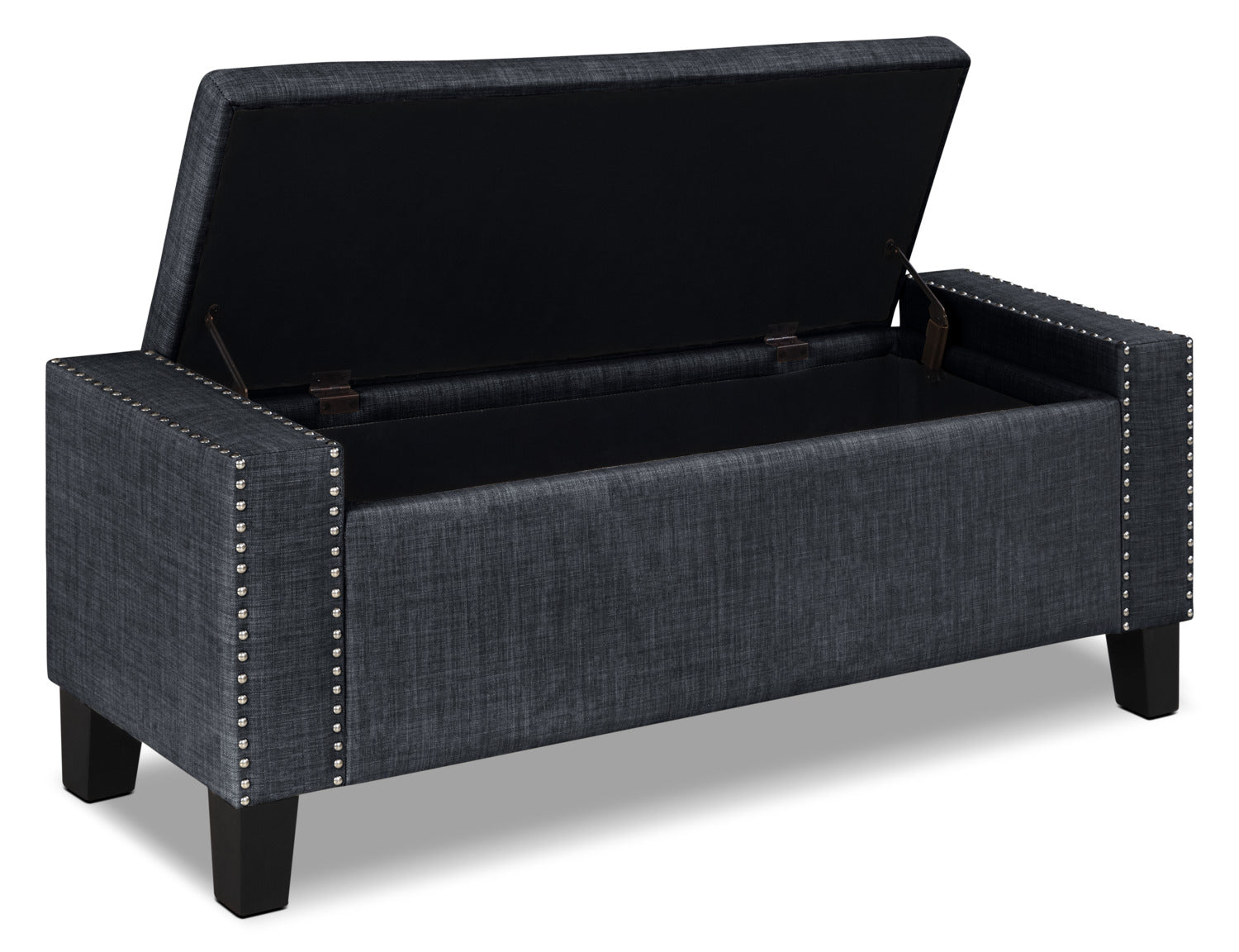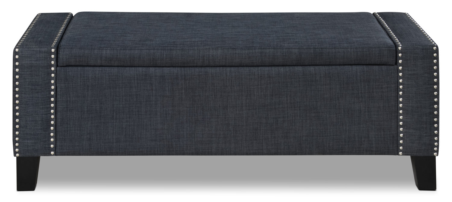 Charming and delightful, this Milan storage ottoman is a chic accent for your home. Whether you're looking for a little extra storage space or a soft seat for guests, the Milan delivers. The top opens to reveal a spot to store extra throw blankets or even toys. Plus, nailhead accents put the finishing touch on the stylish grey faux linen cover.