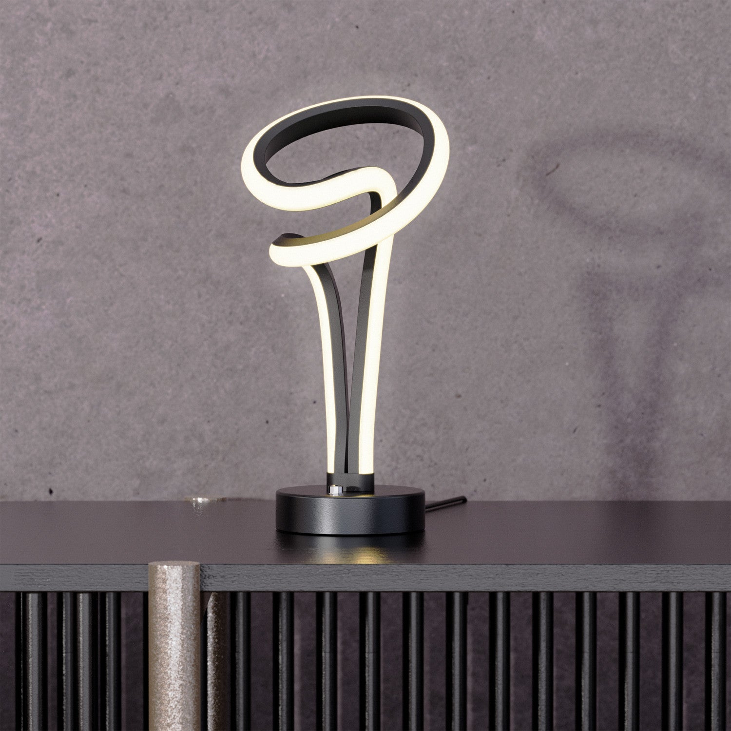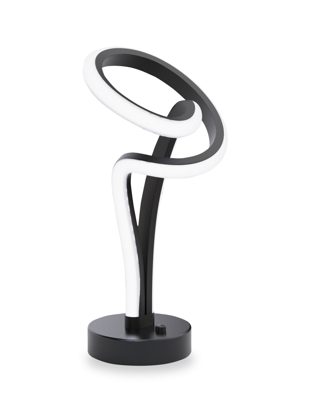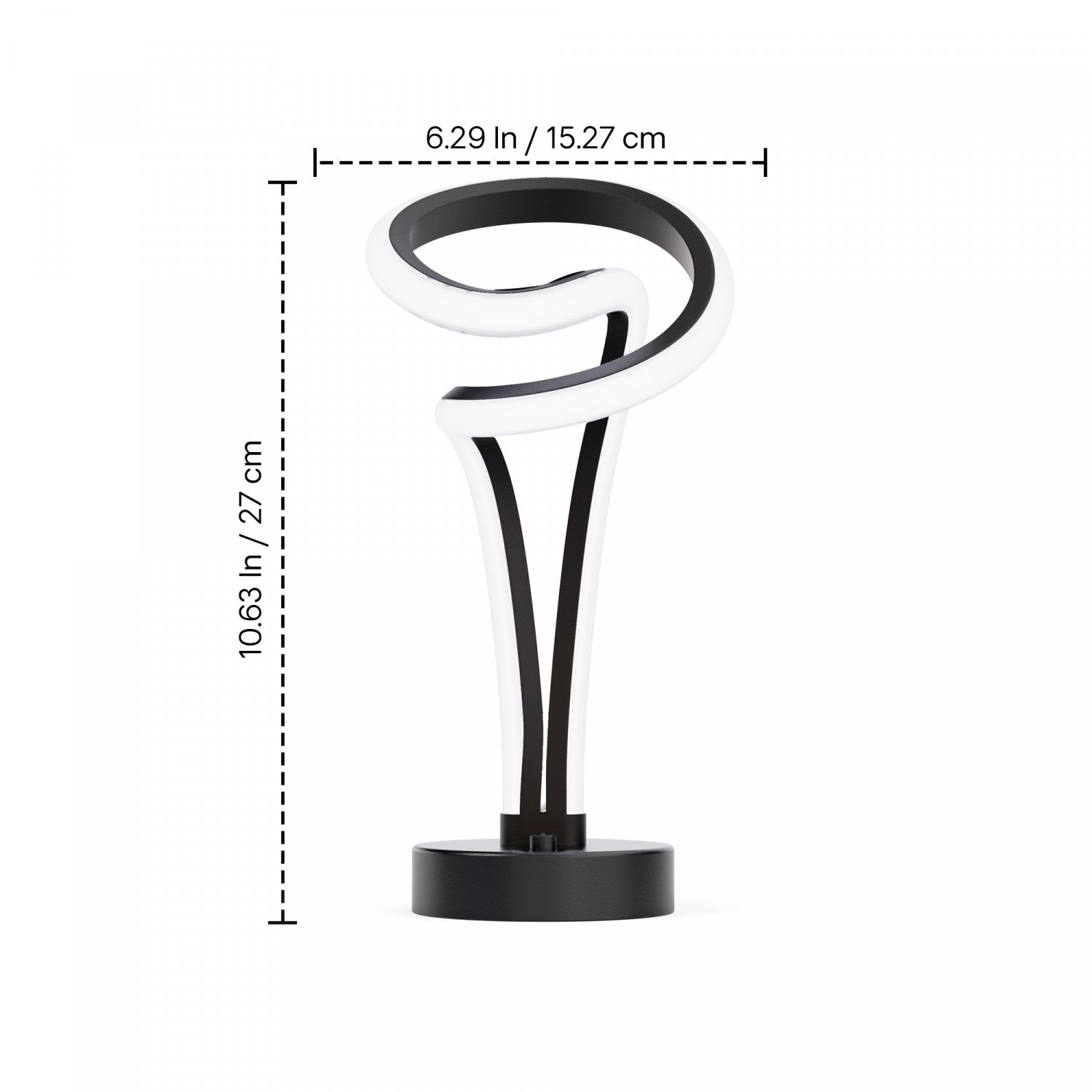 Complement your decor with the modern elegance table lamp, echoing the loop design of its floor lamp counterpart. At 11" tall, it offers a warm 3000k soft white glow, perfect for ambient lighting on a desk or bedside table. The matte black and rose gold design presents a chic and contemporary aesthetic, blending beautifully in any modern space.