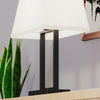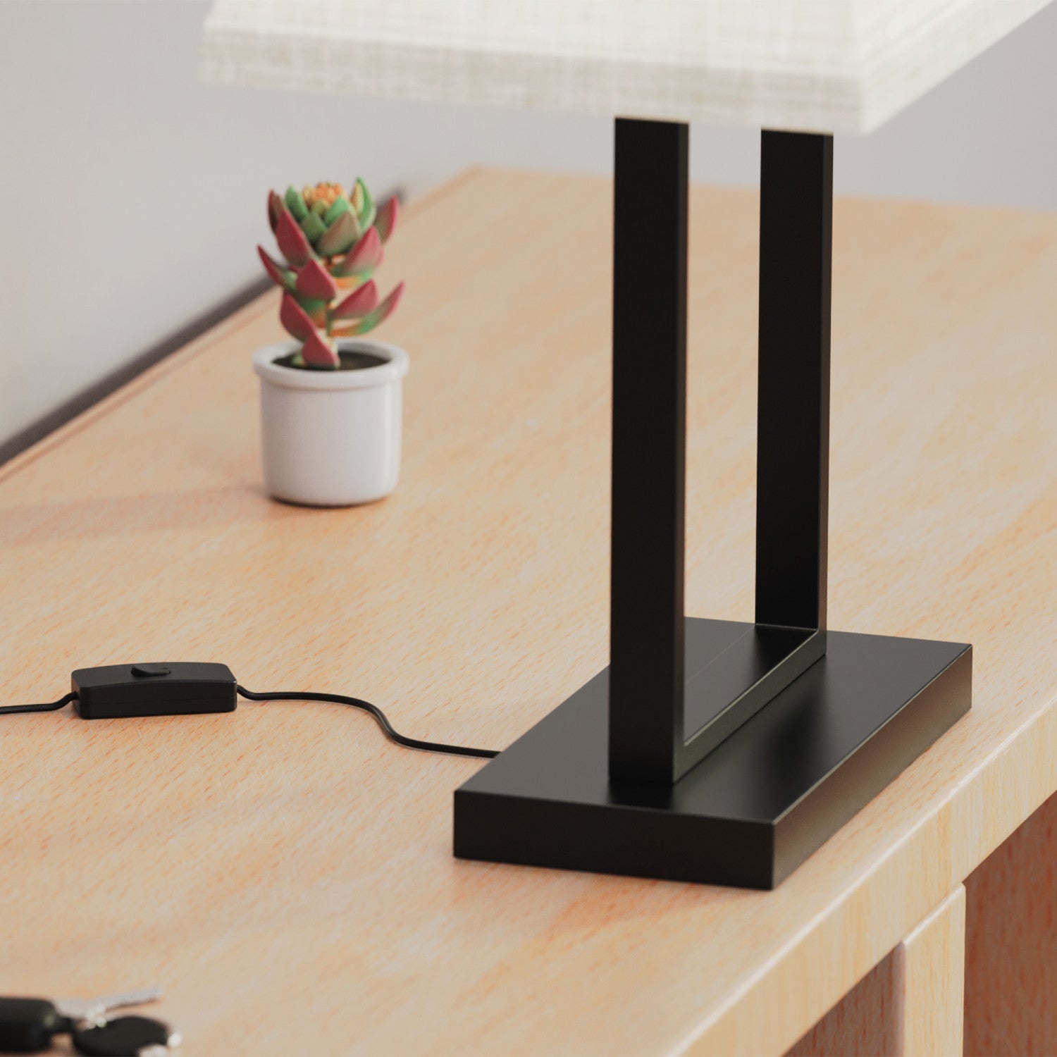 The 22" table lamp combines clean lines and modern aesthetics with its bold rectangular form. Its e26 bulb compatibility offers the flexibility to choose the desired level of brightness, while the fabric shade diffuses light to create a soft, welcoming ambience. The lamp's sleek design makes it an ideal accent piece for contemporary interiors, providing both style and substance.