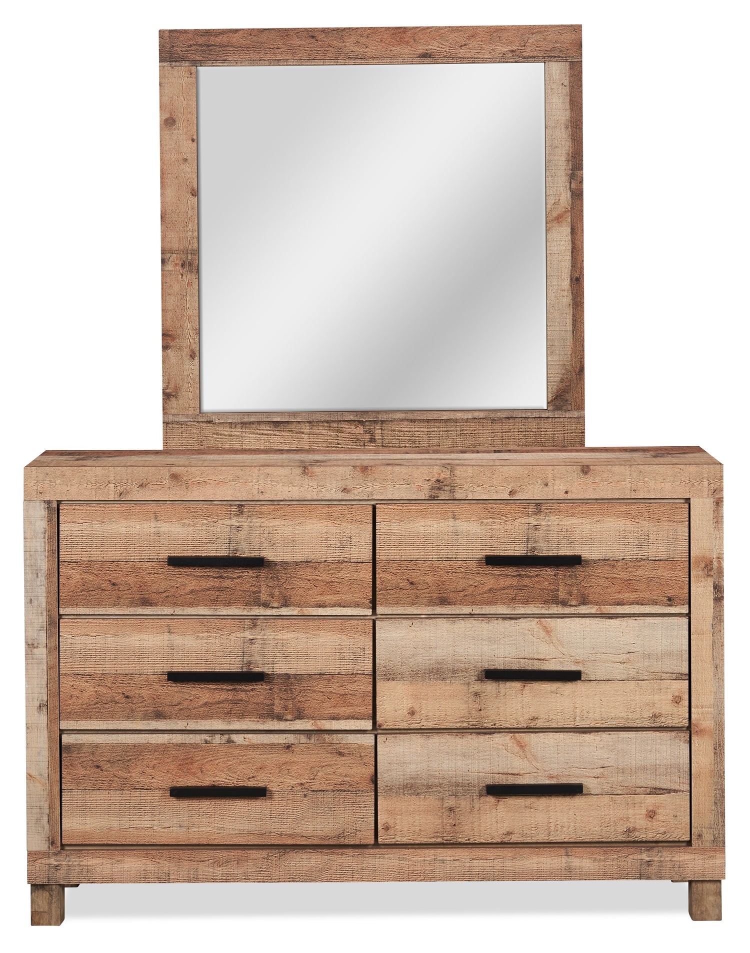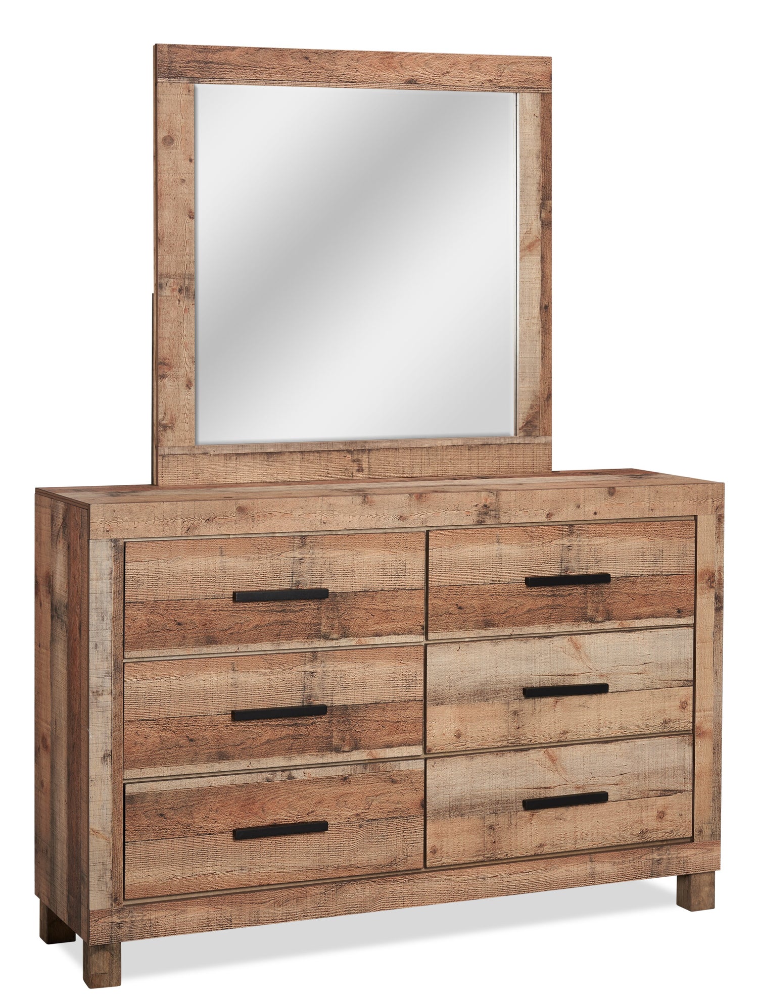 Add a breath of fresh air to your bedroom with the Mojave dresser. Six deep drawers with sturdy metal drawer pulls are ready to hold your clothing, blankets or other bedroom essentials. Reclaimed wood-styled planks are finished in both light and dark shades of brown to add a stylishly weathered touch. Add the Mojave to your bedroom and let its rustic style help you create your own personal bedroom oasis.