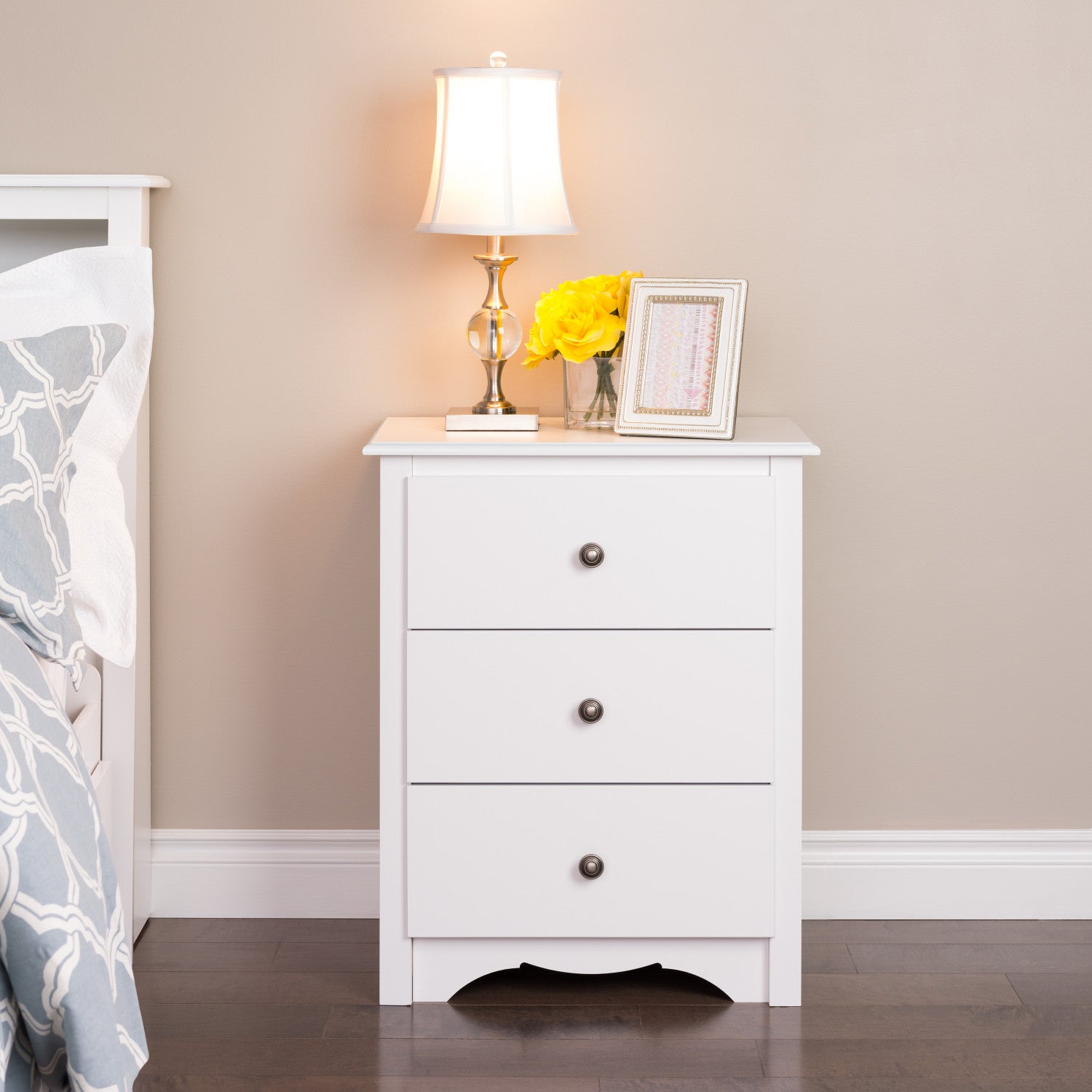 The Monterey 3-Drawer Nightstand is both modern and functional. This space-saving bedside table gives you three full-size drawers, all perfect for storing the odds and ends of your life out of sight. Use the sturdy profiled top to pile on your books, cell phone, alarm clock, lamp and whatever else you like: this nightstand can take it with style to spare. Coordinate it with other space-saving pieces from the Monterey Bedroom Collection!