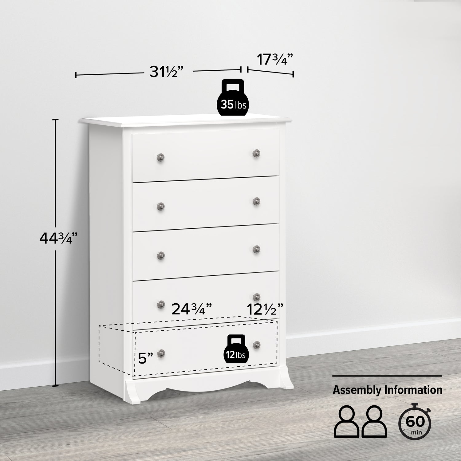 | Additional Information | Product Weight Limit: Per Drawer: 12 lbs ; On top: 35 lbs |