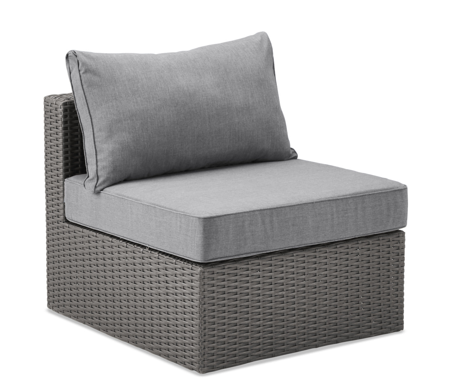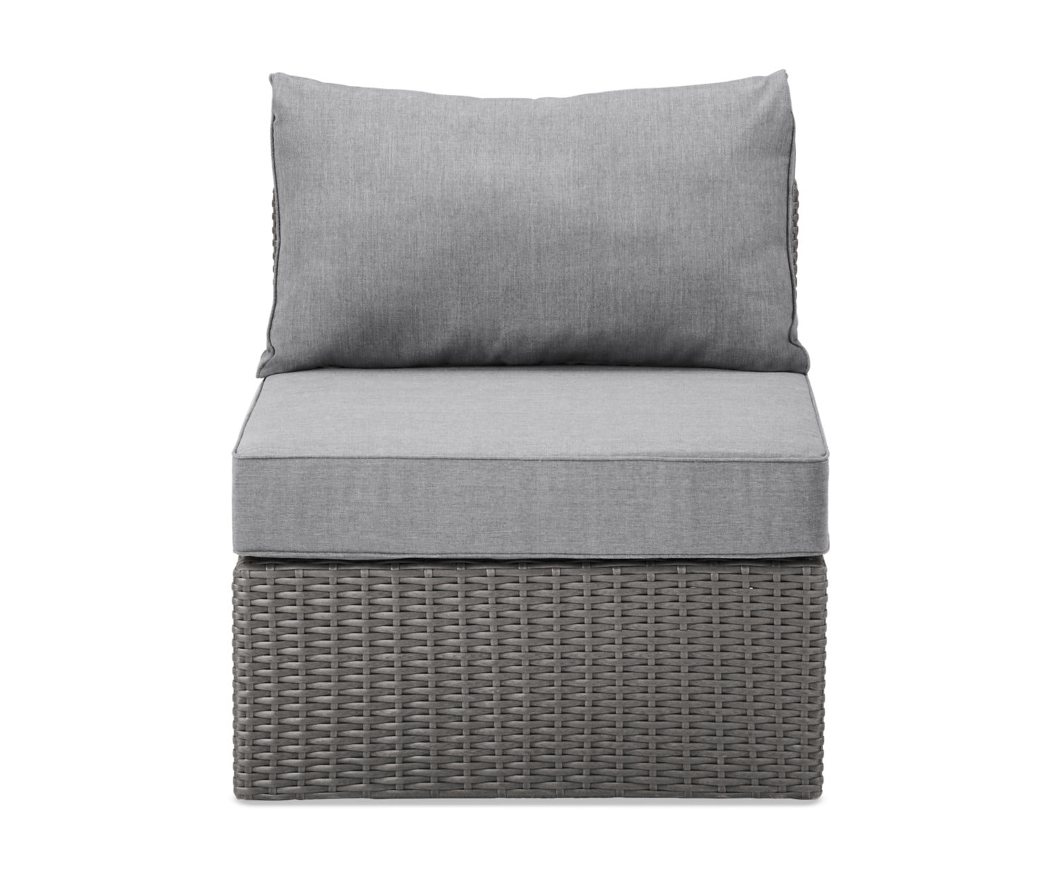Spend this summer soaking up some sun with this Morris armless patio chair. A square, solid steel frame wrapped in resin wicker creates a stable base to support you, while the plush grey olefin cushion offers a comfortable, foam-stuffed seat you’ll want to relax on for hours. Lift the fabric panel underneath the cushion to reveal a secret storage space that lets you easily keep summer essentials nearby and store the cushions at the end of the season. Add the Morris to your deck, and make the most of summertime fun.