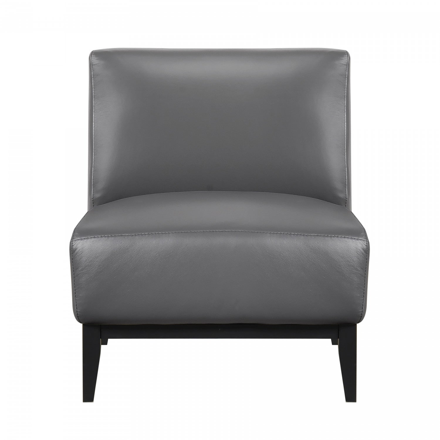 Elevate your living space with the sophisticated and comfortable murdock collection. This contemporary slipper chair offers a luxurious feel and timeless elegance thanks to its 100% top grain leather upholstery coupled with a sleek, minimalist profile. The dark grey finish of the soft, buttery leather contrasts against the black solid wood legs and exposed show-frame for a look that is effortlessly modern, while solid wood and plywood framing ensures durability with a surprisingly robust weight capacity. The high-density foam padding and no-sag fixed back and seat cushions provide exceptional comfort for a supportive seating experience that makes this chair both an accent and an asset. Small enough to fit in any room but adding quite the stylish punch, the murdock enhances the aesthetic of any and every space. Multiple colours available.