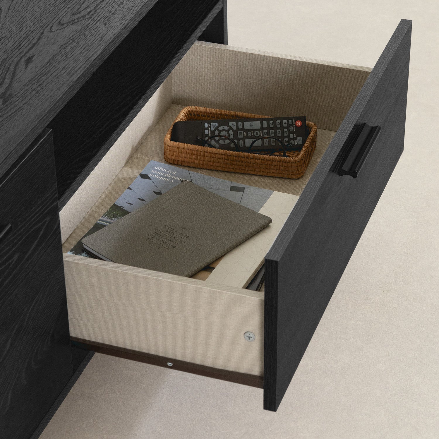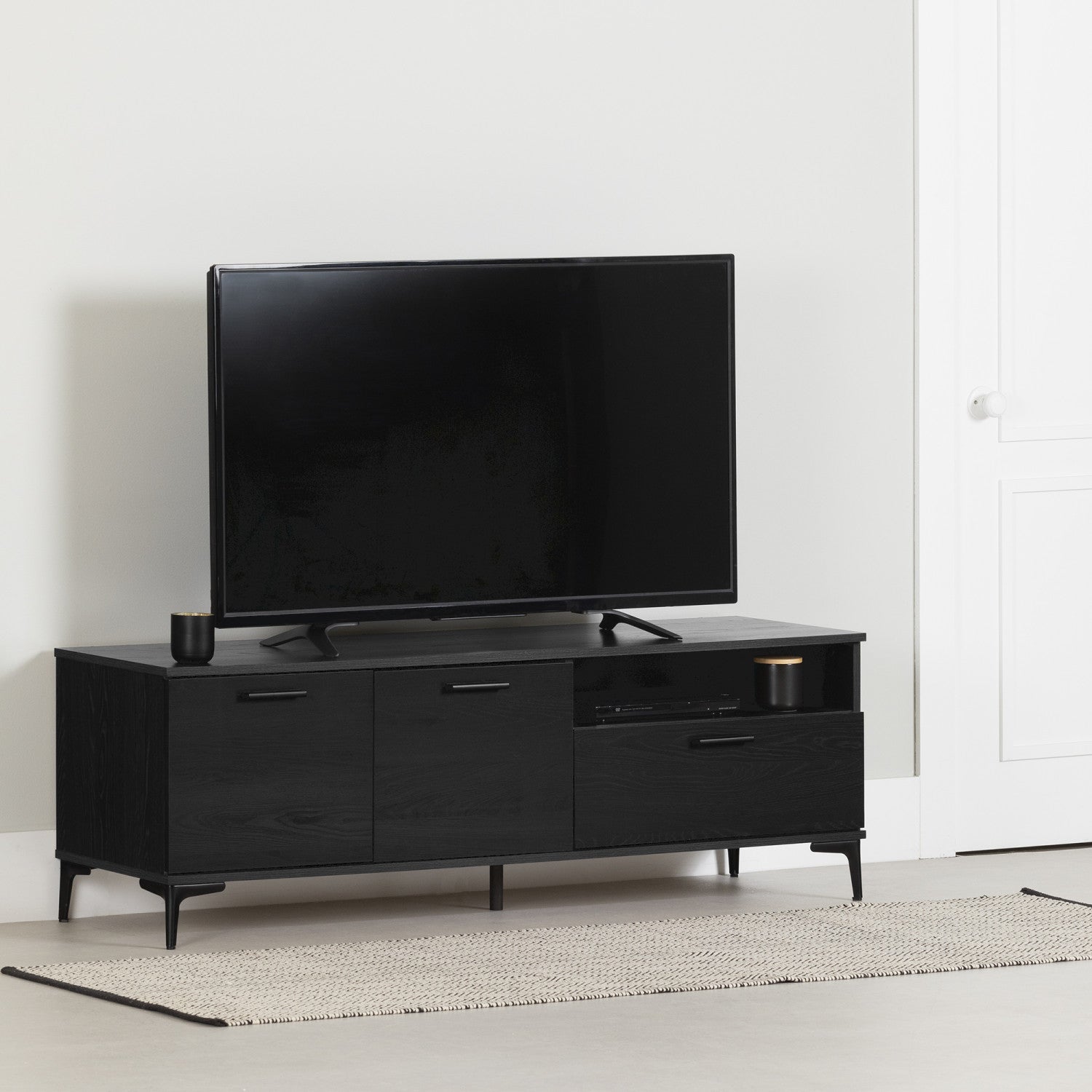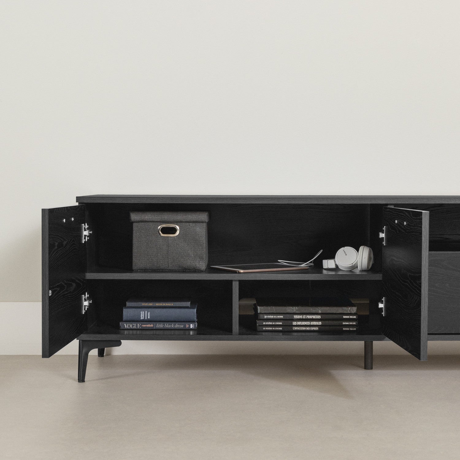 With this 60-inch TV stand, everything seems to naturally fall into place. Ideal for TVs up to 65 inches, it highlights your screen without overshadowing it. When it comes to storage, you’ll be impressed: an open space for your devices, perfect for the TV receiver or gaming consoles. Two doors reveal a fixed shelf, hiding away whatever needs to be out of sight. For those everyday little items, the drawer is right there, within reach. And the cable management hole? Your cords will always be neatly organized. t’s the piece that elevates the aesthetic of your room while setting the perfect and modern mood for family movie nights or relaxing after a long day. Give your living room that trendy look.