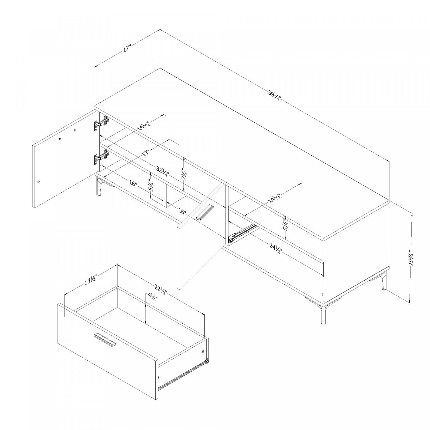 Width: 59.25" (150.5 cm) Height: 19.75" (50.2 cm) Depth: 17" (43.2 cm)