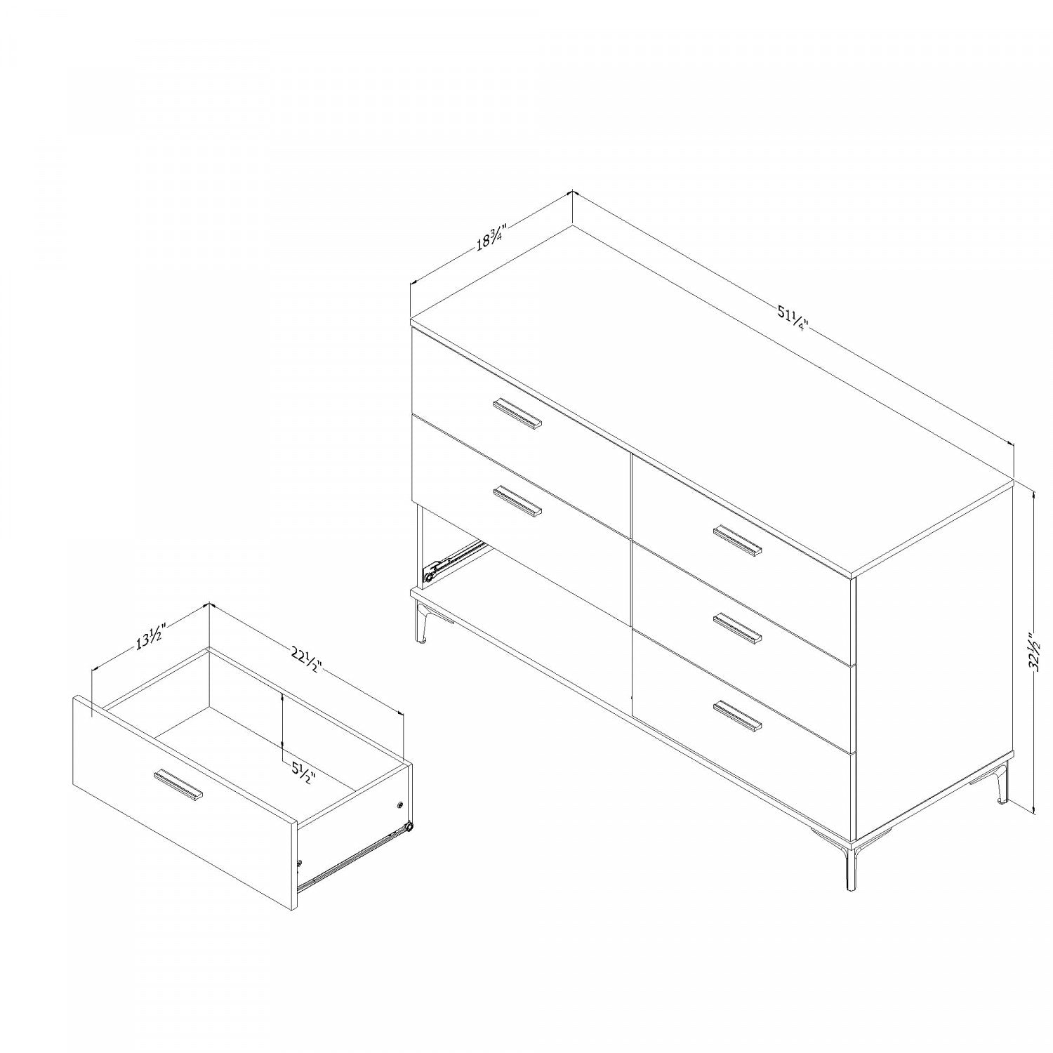 This trendy chest of drawers will be perfect for your bedroom with its sophisticated look. Its thin metal legs and handles as well as its sleek lines give it a minimalist look. Its versatile style will match perfectly with your decor to create a soothing atmosphere. Use the six drawers this dresser offers you to organize your clothes neatly It will be ideal to make sure your closet isn’t overcrowded. The spacious surface, meanwhile, will allow you to display photos and a lamp to personalize your bedroom.
