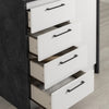 Whether you live in a condo, an apartment or a small house, this compact kitchen island with integrated storage will win you over. Featuring 4 drawers on metal runners, a door with removable shelf and a sturdy melamine surface, it's sure to get you in the mood to cook delicious food! Use the drawers to organize your utensils, dishcloths and other accessories. Behind the door, place your small appliances and adjust the shelf according to your needs. For even greater ease of use, the door features soft-closing hinges.