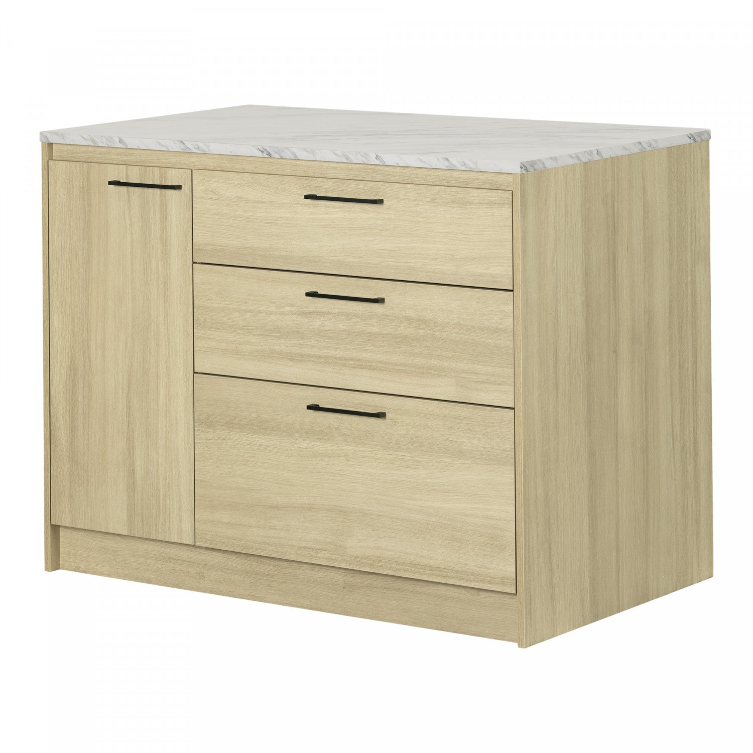 More than an additional work surface: a kitchen essential. Thanks to this kitchen island with integrated storage, your kitchen will never have been so well organized! Take advantage of the 3 reinforced drawers and the door behind which is an adjustable shelf for storing dishes, utensils, cookware and small appliances. Door and drawer slow close mechanism ensure smooth, quiet operation. The water and scratch resistant surface increases your work surface tenfold, allowing you to cook your favorite dishes with complete peace of mind. The polypropylene drawer interiors are even fully washable! All in all, you'll love this low maintenance kitchen island. Versatile contemporary style. Add a little love to your kitchen with this kitchen island featuring stool space and plenty of storage. It's the ideal piece of furniture for extra seating when you're hosting guests, or for creating a breakfast nook in a small space. Its nice metal handles give it a contemporary look that complements most decors. The result is a timeless piece of furniture that's perfect for both apartments and larger houses.