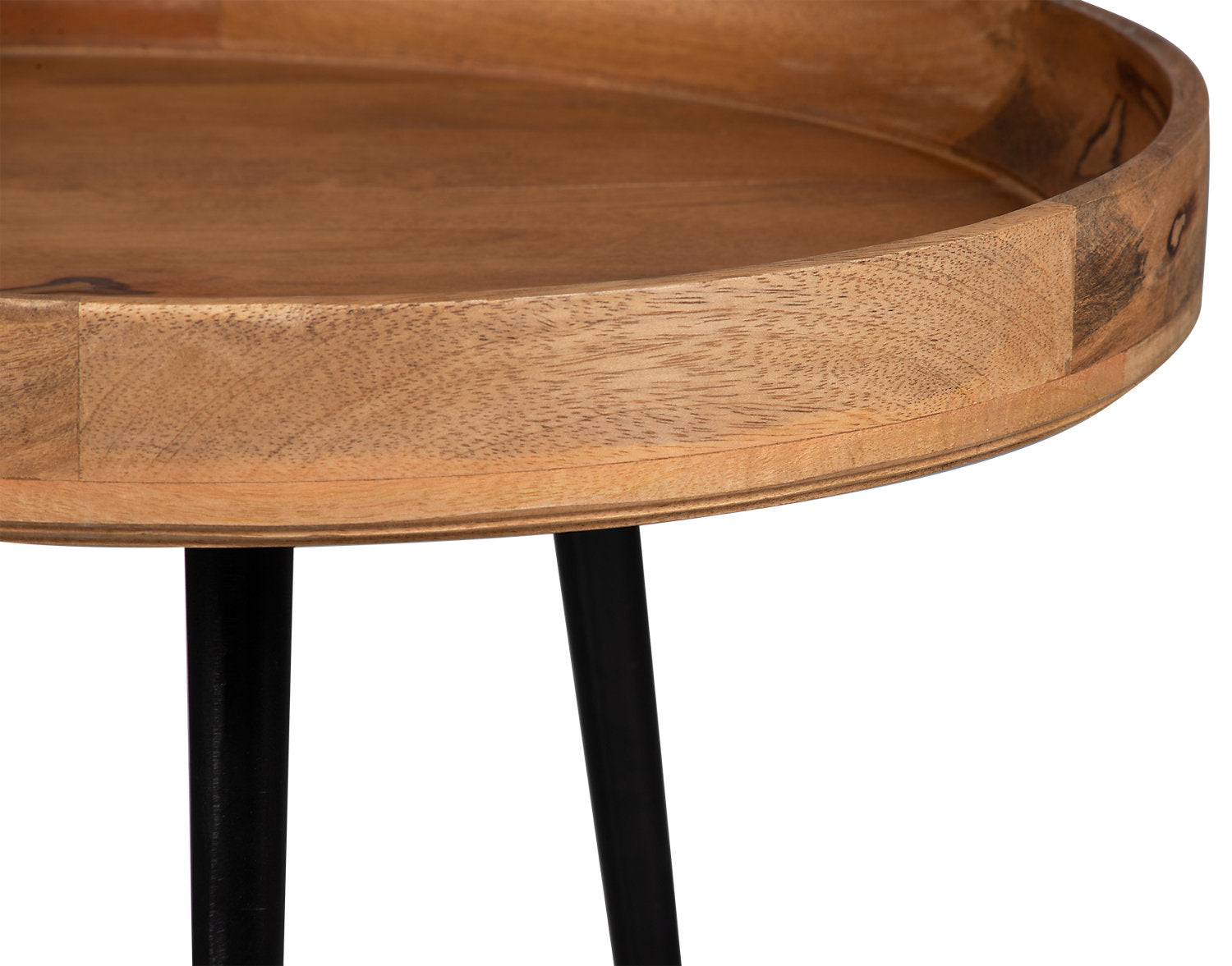 Go chic and go home with this Nashik accent table. If you've been taking special care to design your flat with nothing but stylish, elegant furniture, this is one accent that will fit right in without a hitch. A round slab of polished mango wood rests atop three slim legs, a style that looks just as good holding your TV remote as it does a prized bonsai tree. Finally, the bowl design is more than just a convenient feature that keeps loose items from rolling off – its shiny curves serve to highlight the beauty of the woodgrain, preserved in full fantastic detail.