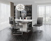 | Accent Details | A bright white hue and stainless-steel accents give this piece an architectural feel. |