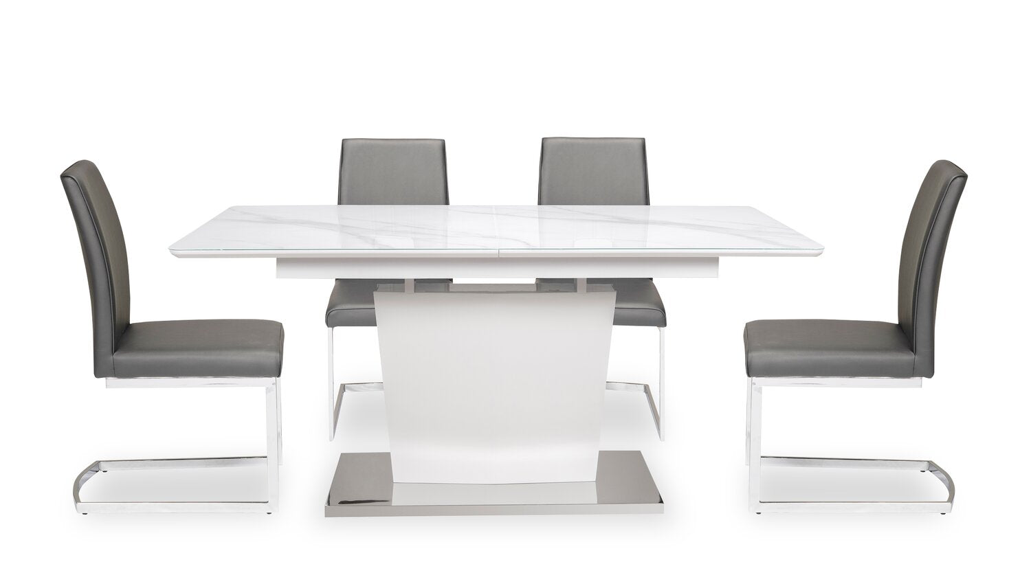 | Accent Details | Dark grey upholstery and chrome legs. |