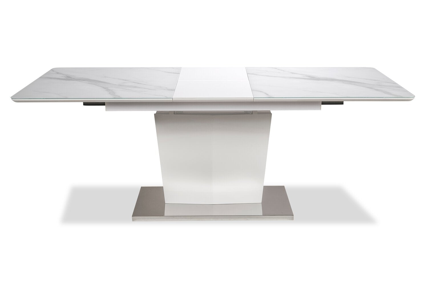 | Accent Details | A bright white hue and stainless-steel accents give this piece an architectural feel. |