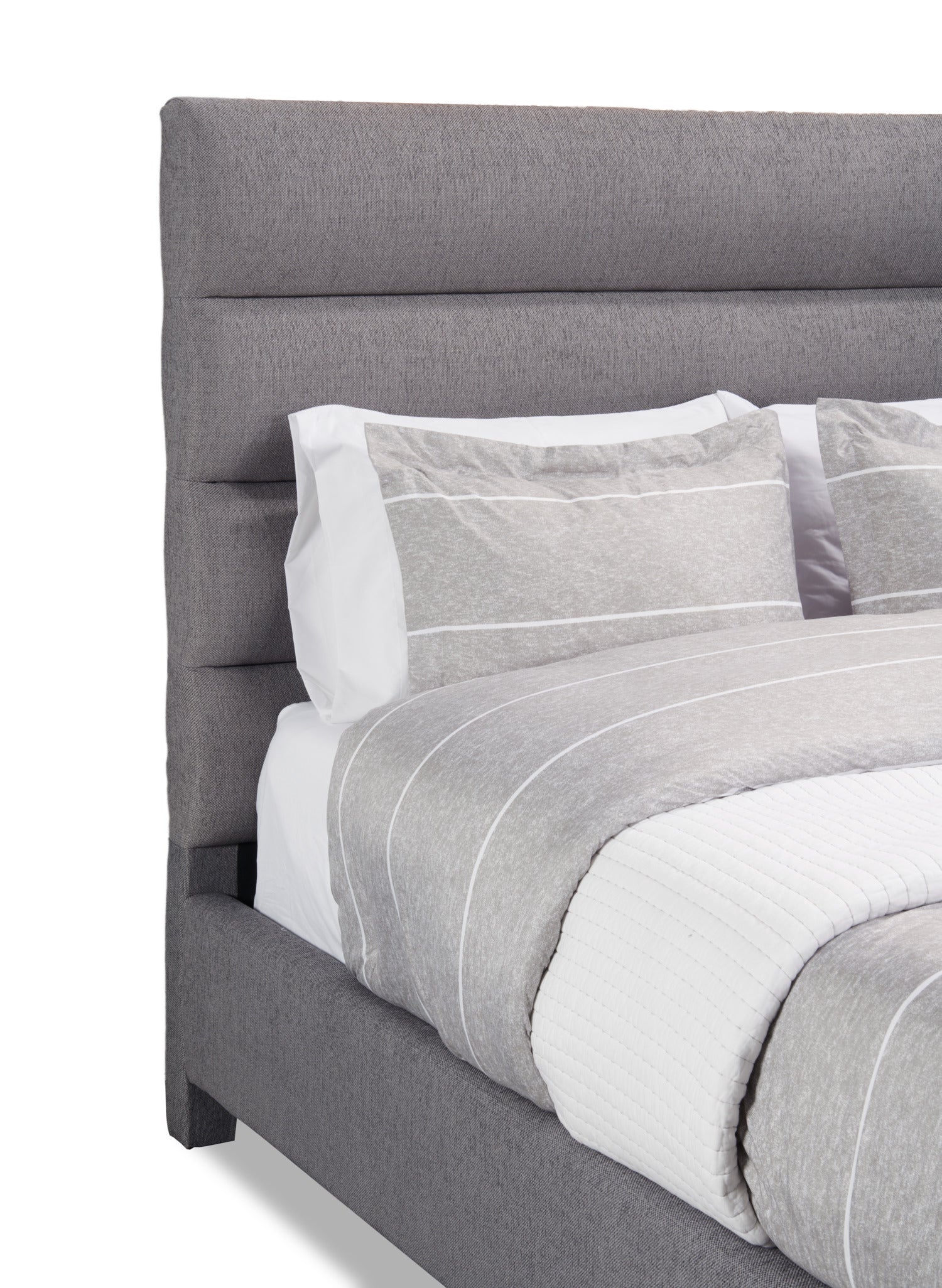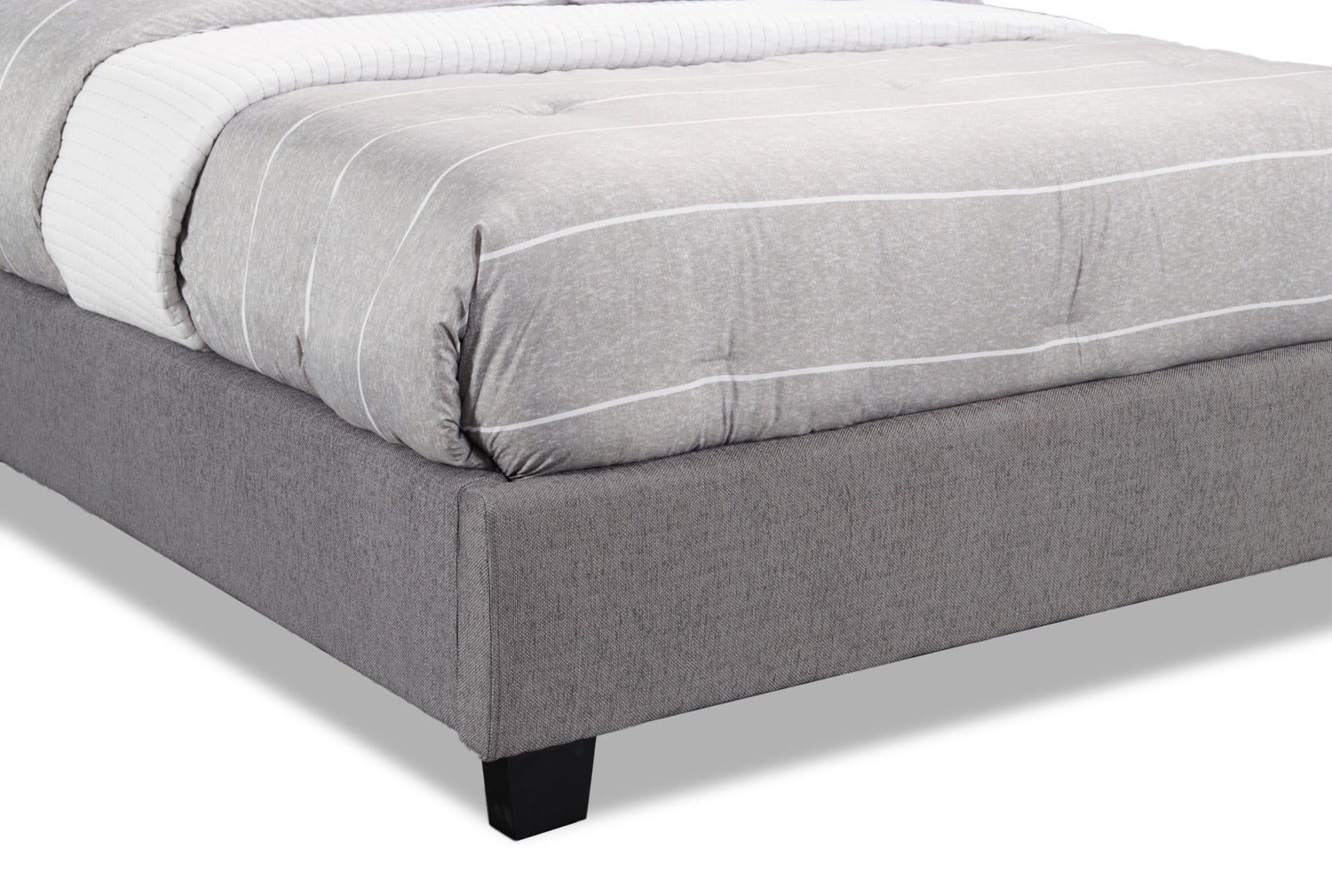Stay up late reading a good book with this upholstered Naya queen bed. The tall headboard is packed full of high-density foam, and the deep channel-tufted design creates a perfect backrest to lean against when binge-watching your favourite show. The plush light grey linen-look fabric acts as a neutral base to pair with almost any room decor. Supported by solid wood feet, this bed will help you finish up your story with a good night’s rest.