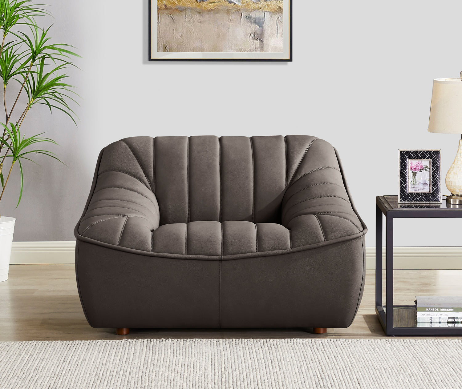This Nest chair is handmade by skilled craftsmen using a kiln-dried solid wood frame. It is covered in soft, supple top-grain leather on all seating areas and armrests. The no-sag seat springs and individually wrapped pocket coils provide a balanced weight distribution for maximum durability and lasting comfort. The seat cushion has memory foam for added comfort and support. Relax and curl up in the Nest, covered in 100% channelled stitched leather with a soft sanded finish.