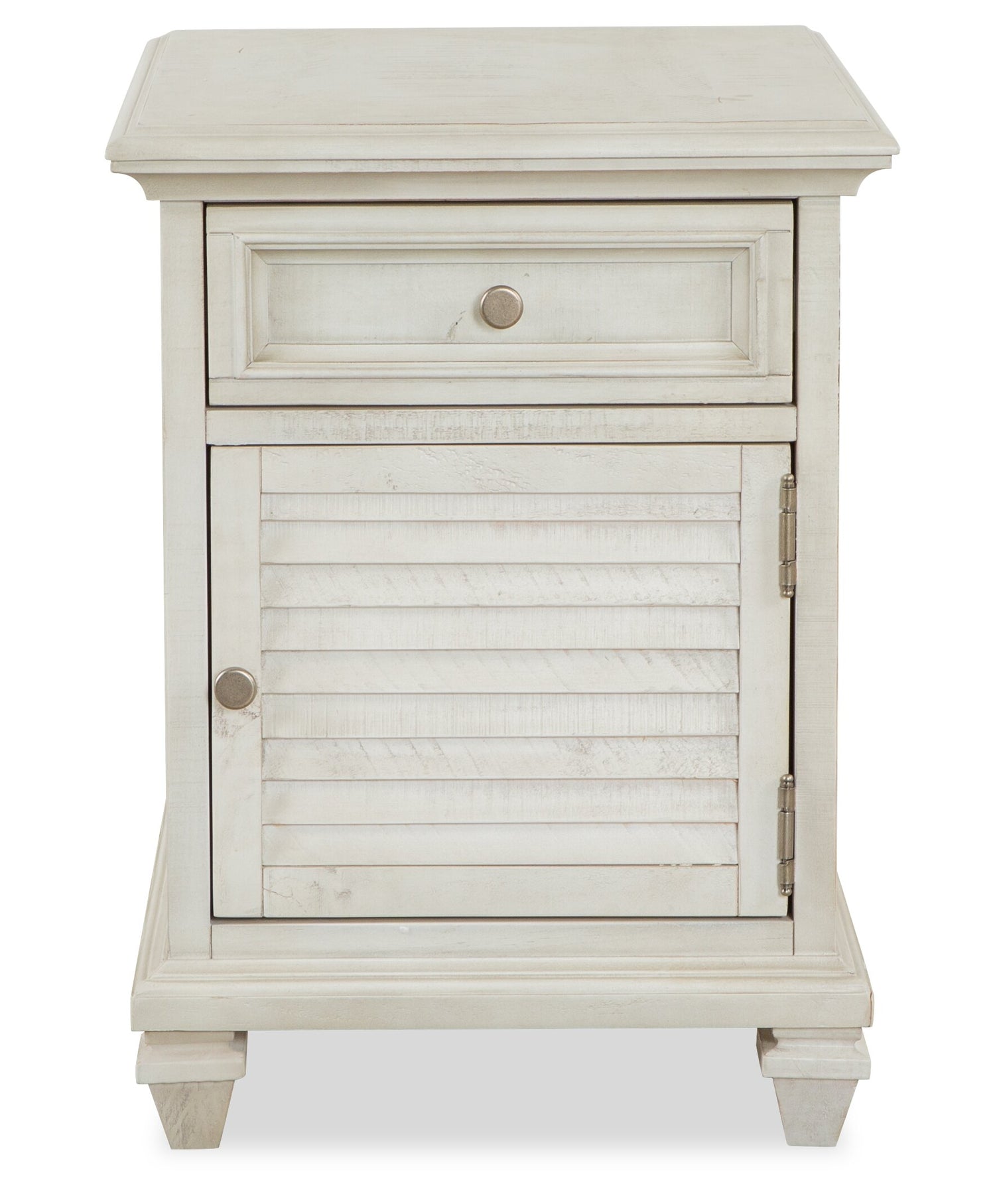 Introduce a classic and elegant atmosphere into your living space with this Newman chairside table. Finished in a neutral alabaster hue, this piece invites a timeless feel into any room. Effortlessly store living room essentials in the framed drawer, and place decor, a lamp and other items on the roomy top surface. Additionally, one cabinet offers extra space for more items. Crafted from sturdy pine, this sophisticated Newman chairside table is an exquisite addition to nearly any home.