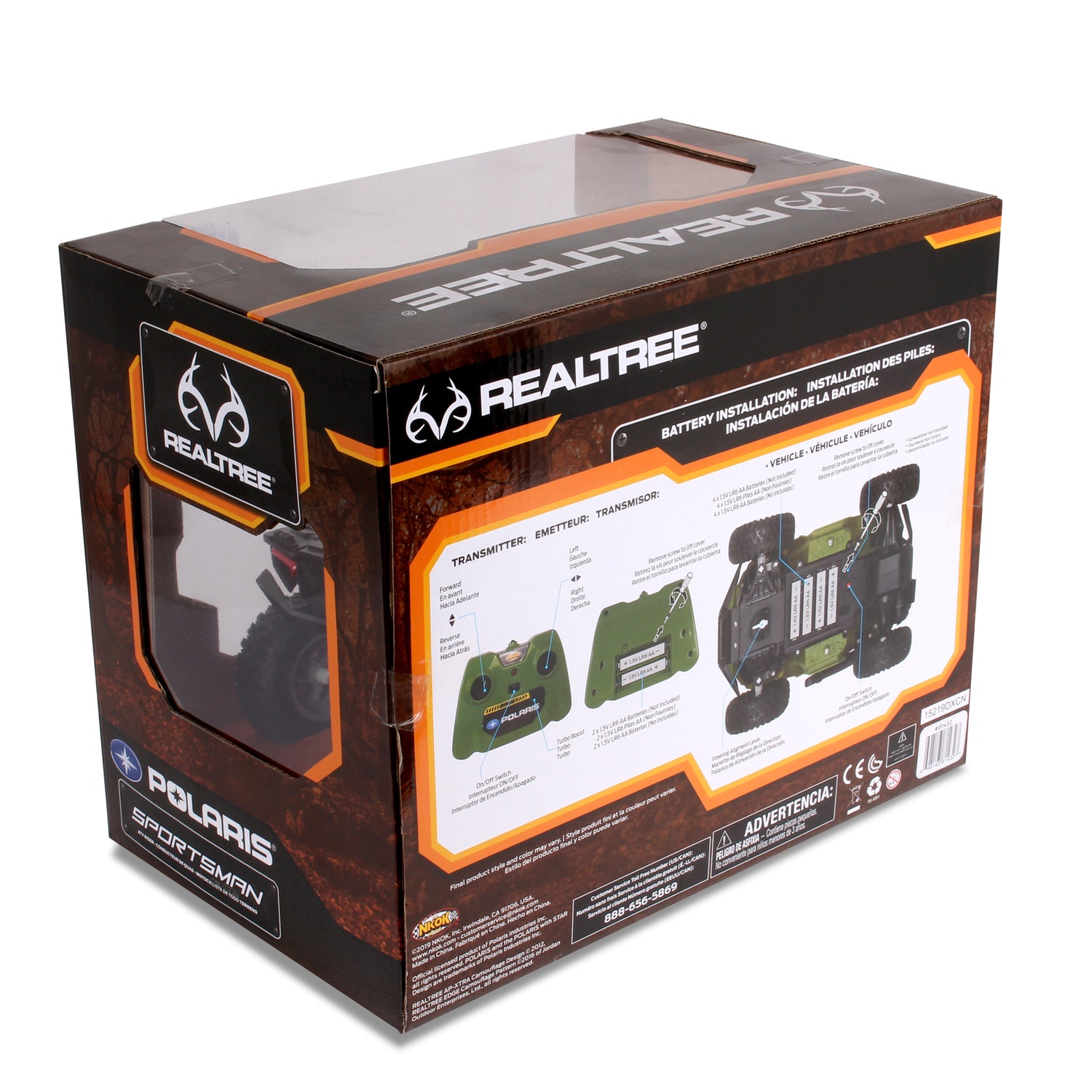 For more than 60 years POLARIS has been synonymous with action and adventure. This officially licensed full function radio controlled POLARIS SPORTSMAN XP 1000 is true to scale. It features working lights, a detailed ATV rider decked out in official Realtree cammo and a super turbo boost that accelerates the vehicle at the push of a button. The 2.4 GHz 1:08 transmitter allows for unparalleled range and the ability to race multiple ATVs at the same time!