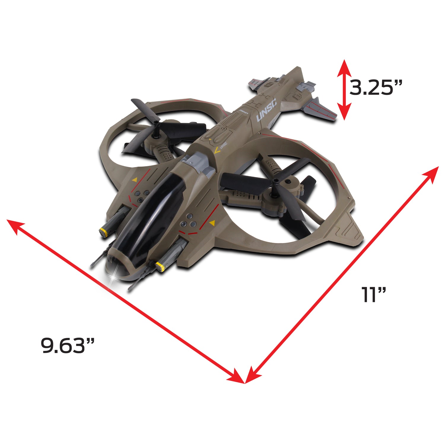 Halo Infinite is the sixth installment in the Halo series. It pays homage to all of the best elements from the previous games, and it features some of the most amazing futuristic military vehicles of all time. The AV-49 Wasp is a perfect Vertical Take-off and Landing (VTOL) aircraft. It is easy to fly, it can hover in place by using an advanced altitude hold feature, and it can move extremely fast. By utilizing a 2.4GHz radio frequency, the Wasp has an impressive range and it is extremely responsive both indoors and outdoors. It is incredibly agile yet stable with its advanced internal gyroscopic technology. It comes with a rechargeable Li-ion battery pack and a charger.