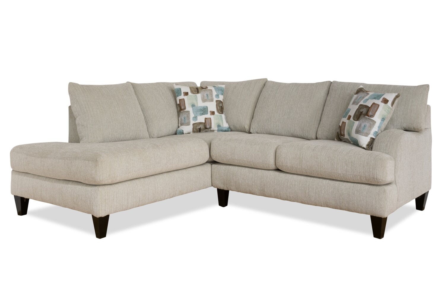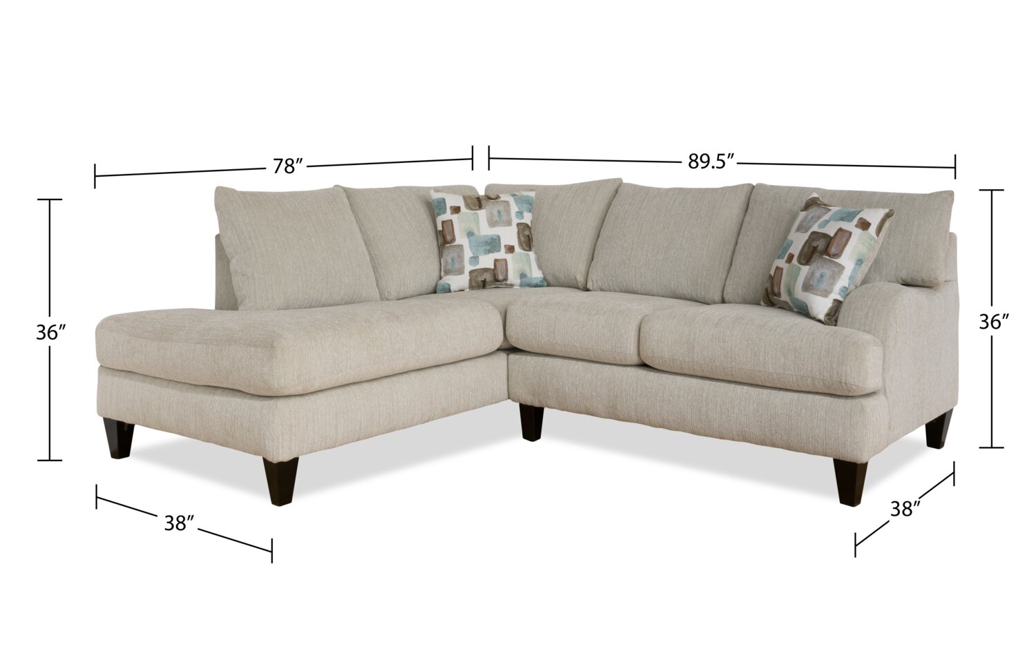 Made in Canada Nofia 2-Piece Left-Facing Chenille Fabric Sectional with  Accent Pillows and Wood Legs - Linen Beige