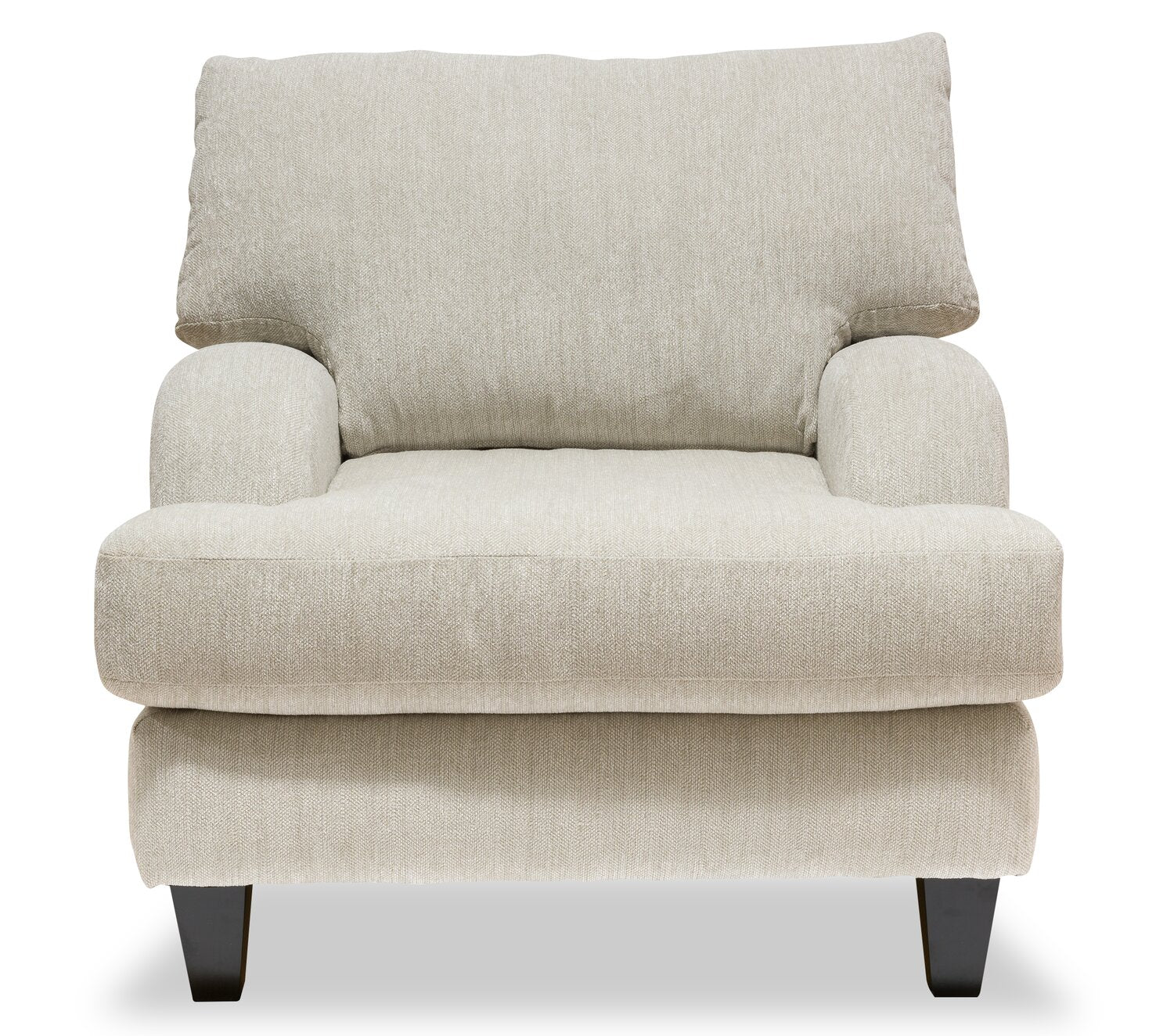 | Accent Details | A curved armrest and plump cushions make this chair look cozy and contemporary. |