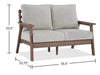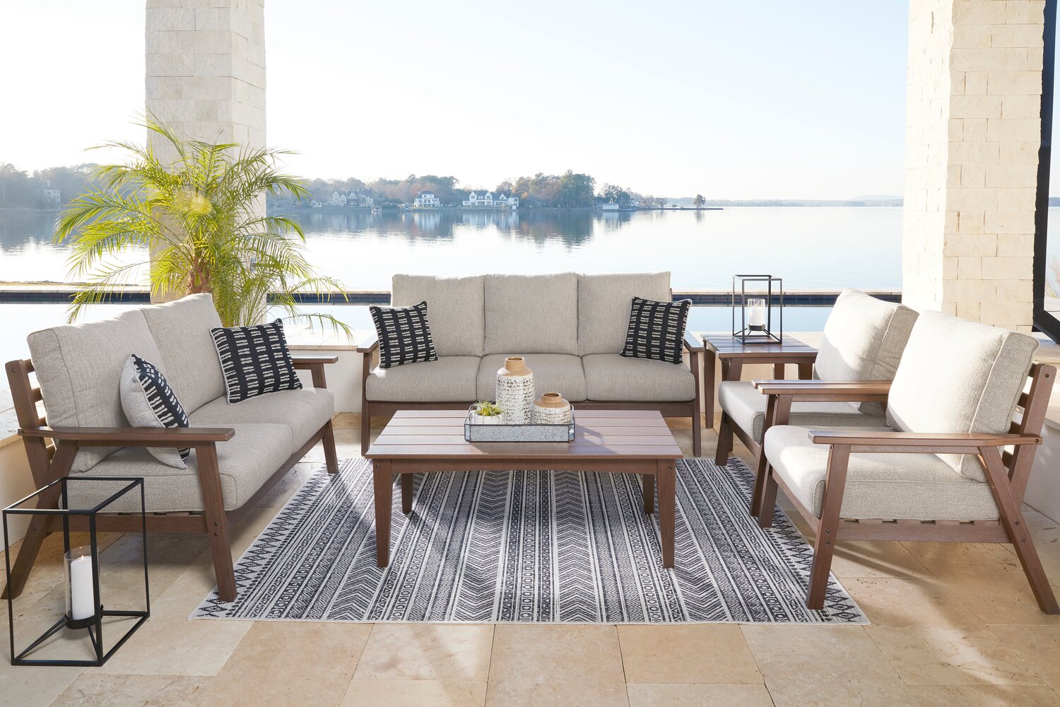 | Accent Details | Slatted design of the back and seat lets rainwater drain when the cushions are stored away. |