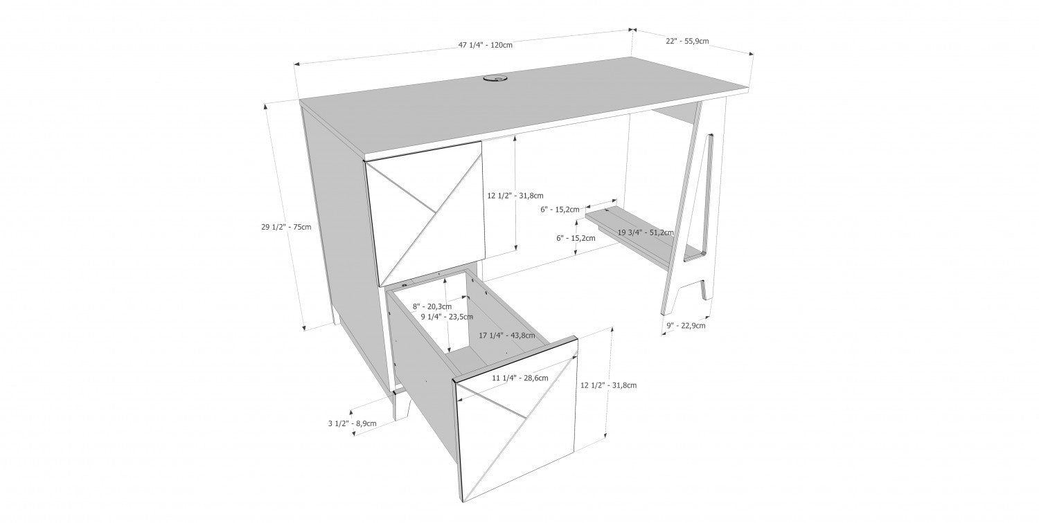 Perfect for giving you the space you need to tackle your creative tasks, the Atypik desk is ideal as the centerpiece of your workspace with its unique look and the avant-garde detail of its "A" leg. For practical reasons, it has 2 graphic detail drawers offering ample space to store and organize your personal belongings.