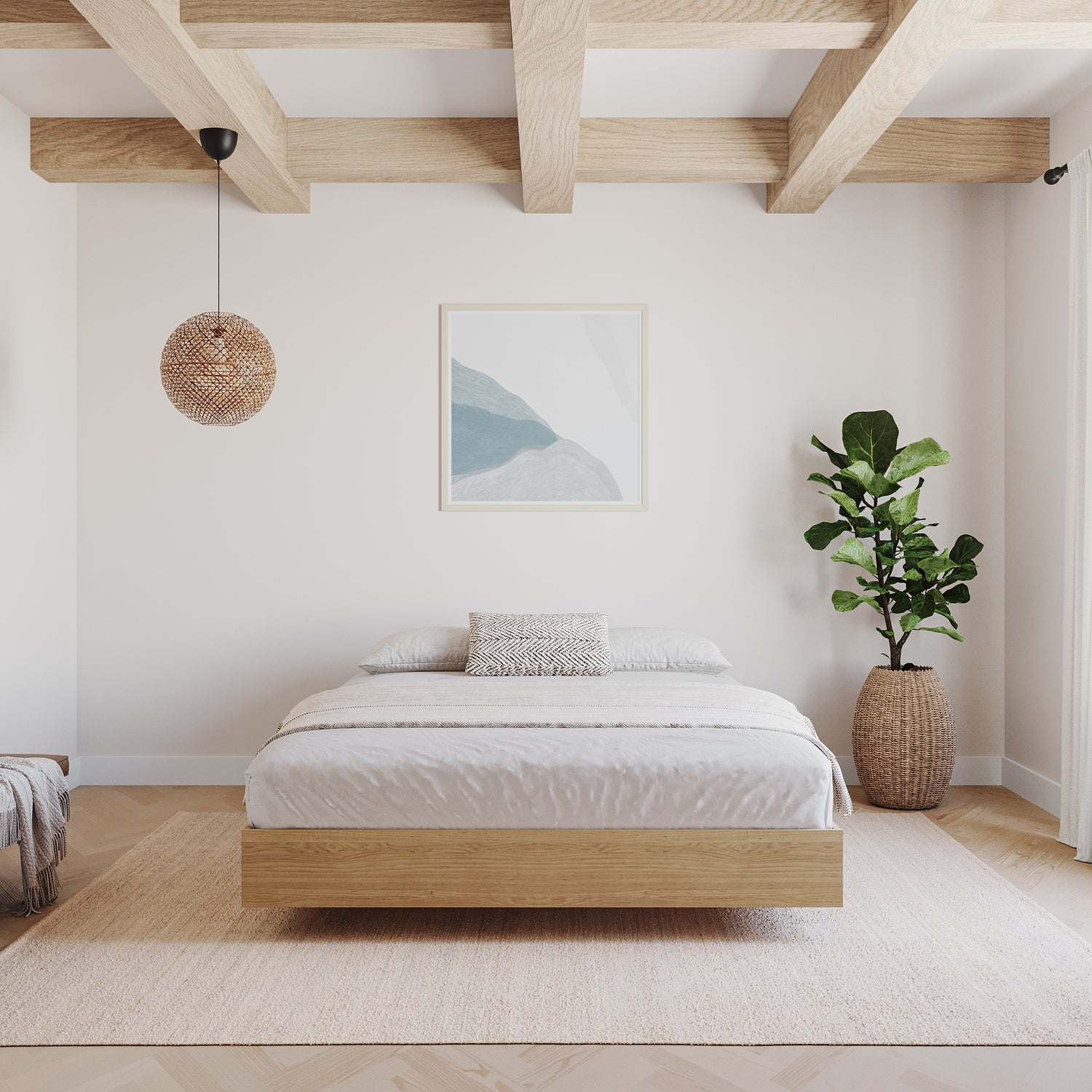 Nexera full size platform bed in Natural Maple can be paired with different Nexera full size headboards to create a complete bed set. Its unique & modern design gives the impression the bed floats above the ground, giving the entire room an airy feel. This bed also features a unique metal and hardwood slat construction allowing for easy assembly, sturdy construction and easier handling.