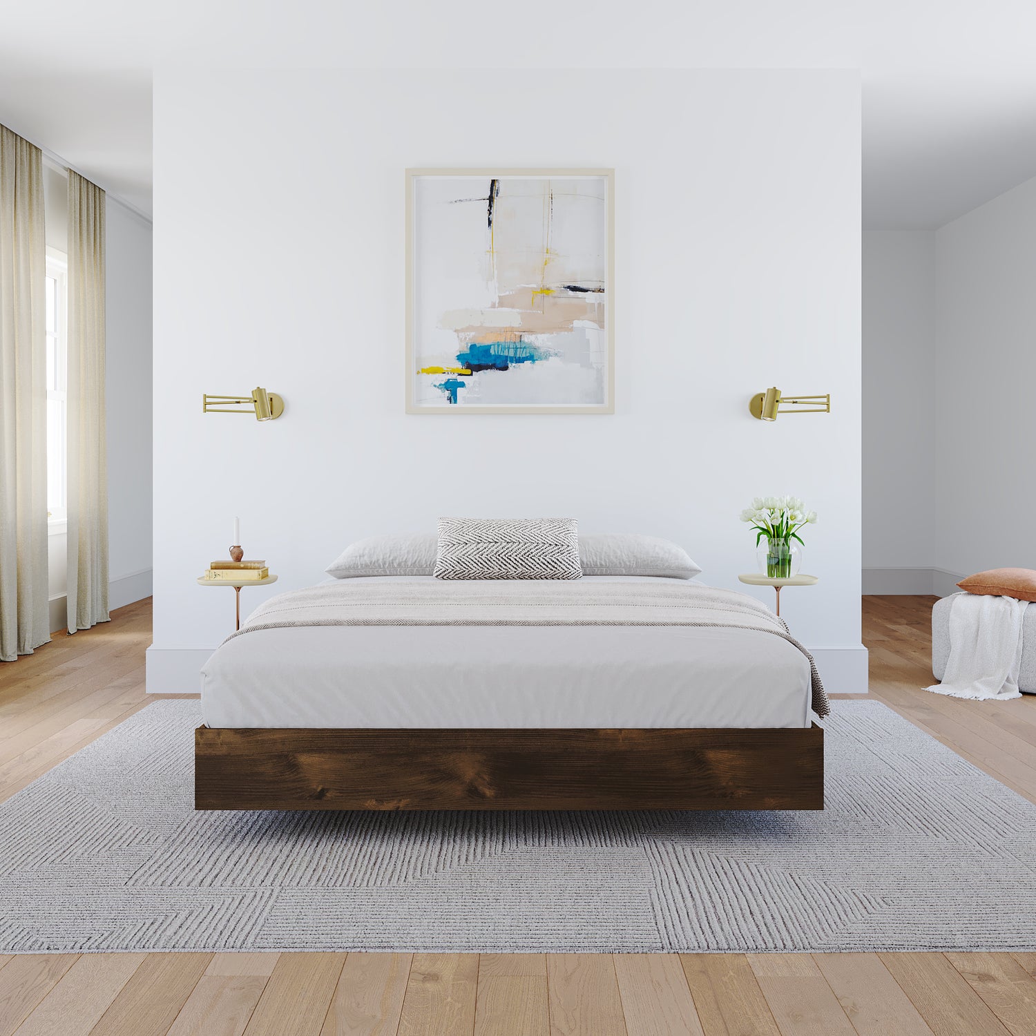 Nexera full size platform bed in Truffle can be paired with different Nexera full size headboards to create a complete bed set. Its unique & modern design gives the impression the bed floats above the ground, giving the entire room an airy feel. This bed also features a unique metal and hardwood slat construction allowing for easy assembly, sturdy construction and easier handling.