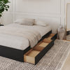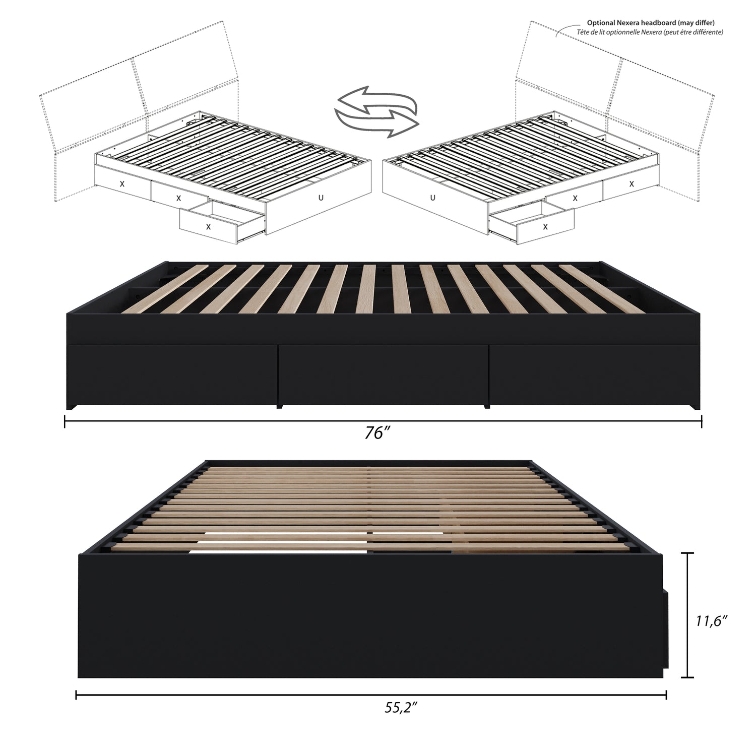 Nexera Full size 3-drawer bed in Black can be paired with different Nexera Full size headboards to create a complete bed set with lots of storage. This Full Size 3-Drawer Storage bed offers 3 convenient drawers, ideal to store away beddings, clothes, toys, books without taking any extra square footage. It's also entirely reversible, so you can decide on which side of the bed you prefer having the 3 drawers. This bed frame features a unique metal and hardwood slat construction allowing for easy assembly, sturdy construction and easier handling.